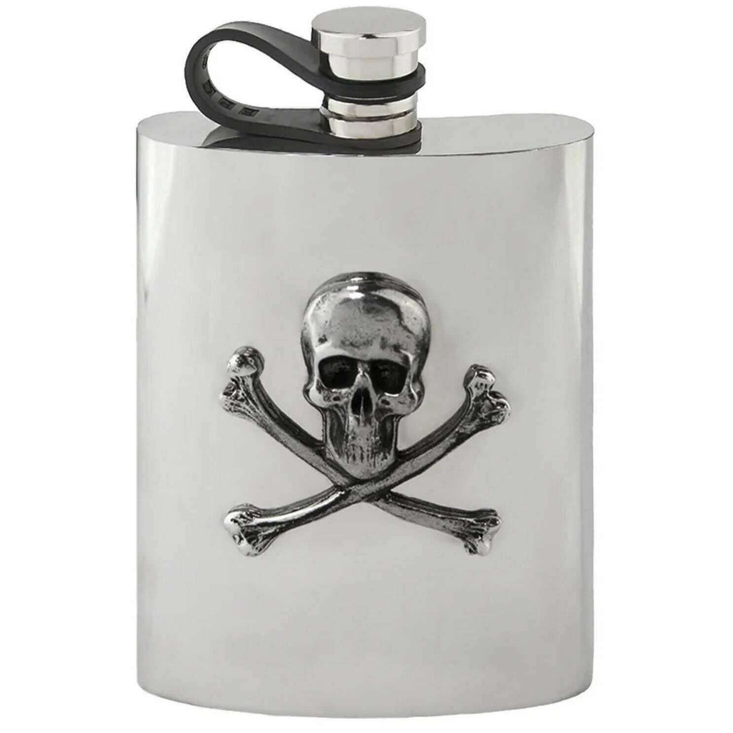 English Pewter Company 6oz Skull and Crossbones Flexi Cap Hip Flask - Silver
