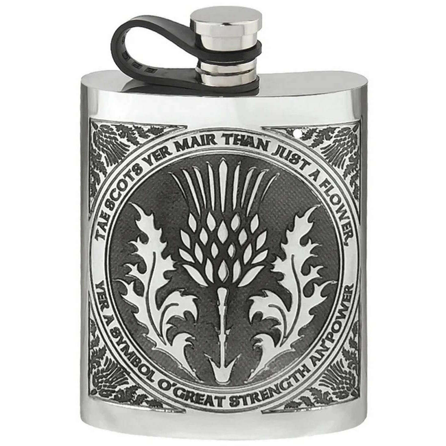 English Pewter Company 6oz Tae A Thistle Flexi Cap Hip Flask - Silver