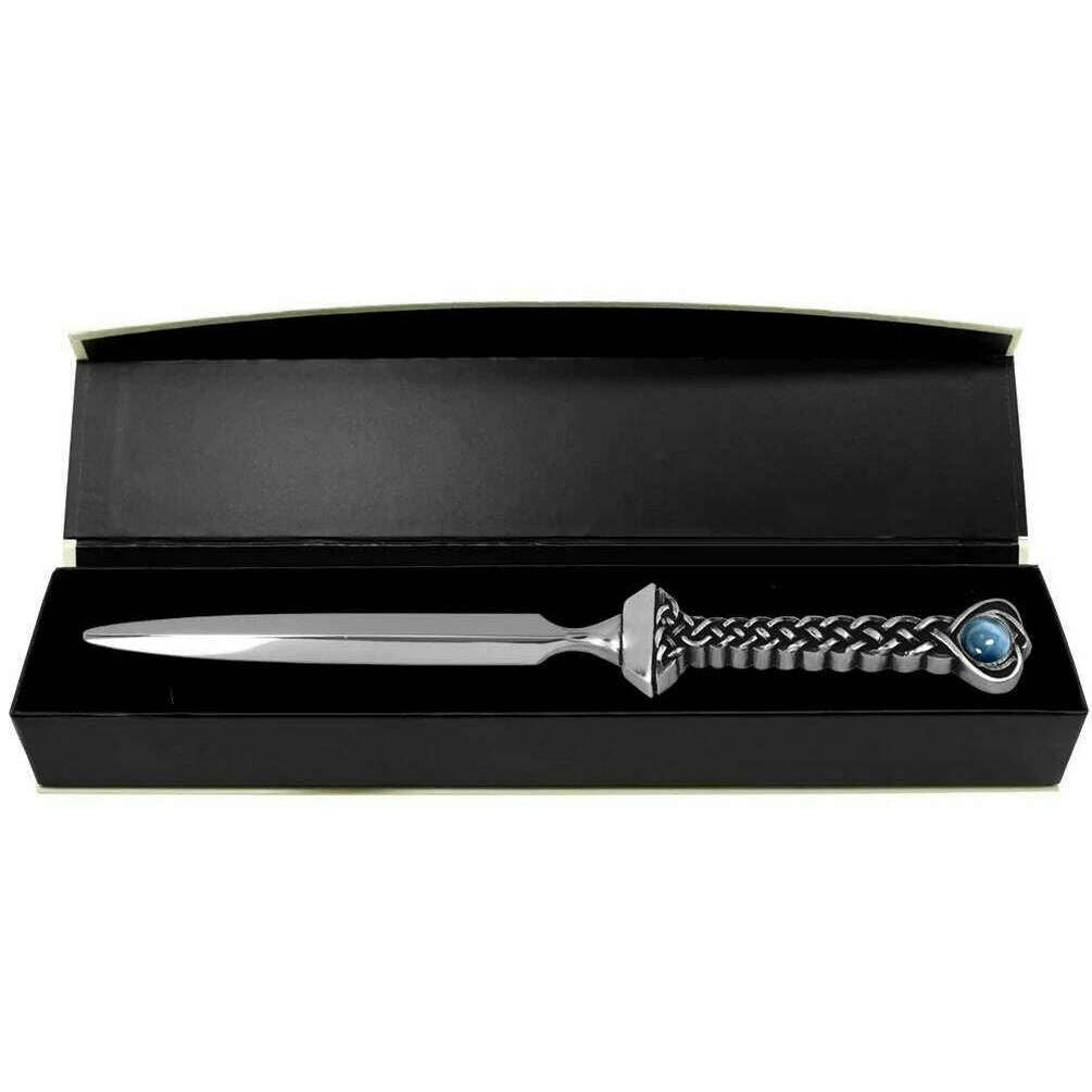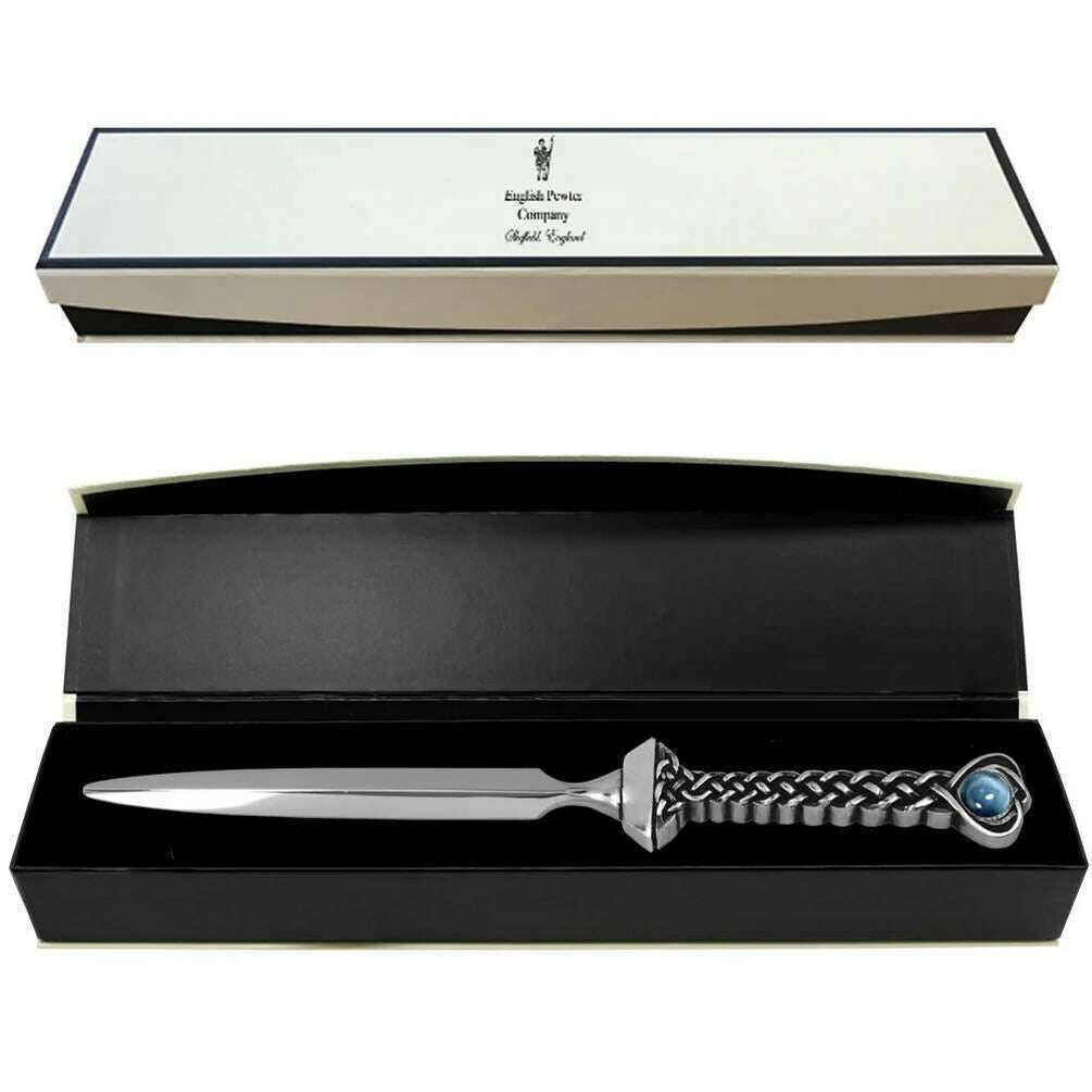 Présentation de cet ouverture de lettre celtique unisexe de la société d'anglais Pewter Company, il est fabriqué à partir de l'étage dans une couleur argentée. Il mesure 21,25 cm (hauteur). Tous les accessoires de bureau sont complets dans une boîte cadeau de société en étain anglaise. L'ouvreur de lettres Celtic de la société d'anglais - Silver est un accessoire idéal pour avoir à remettre lorsqu'il s'agit d'ouvrir votre courrier, vous donnant une coupe propre plutôt que les déchirures non même que vous obtenez lorsque vous utilisez vos doigts. C'est une méthode beaucoup plus facile, ce qui rend la tâche beaucoup plus efficace.