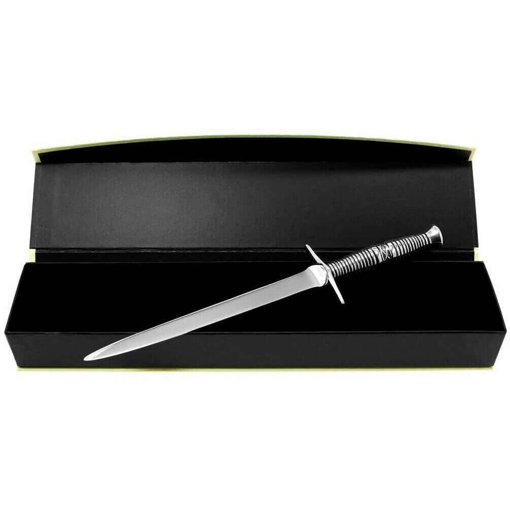 Parfait pour les hommes ou les femmes, cette société d'étagère anglaise Silver Celtic Sword a ouvert, elle est également fabriquée à partir d'étain. Il mesure 21,25 cm (hauteur). Tous les accessoires de bureau sont complets dans une boîte cadeau de société en étain anglaise. L'ouvreur de lettres Sword de la société d'étagère anglaise - Silver est un accessoire idéal pour avoir à remettre en ce qui concerne l'ouverture de votre courrier, vous donnant une coupe propre plutôt que les déchirures non même que vous obtenez lorsque vous utilisez vos doigts. C'est une méthode beaucoup plus facile, ce qui rend la tâche beaucoup plus efficace.