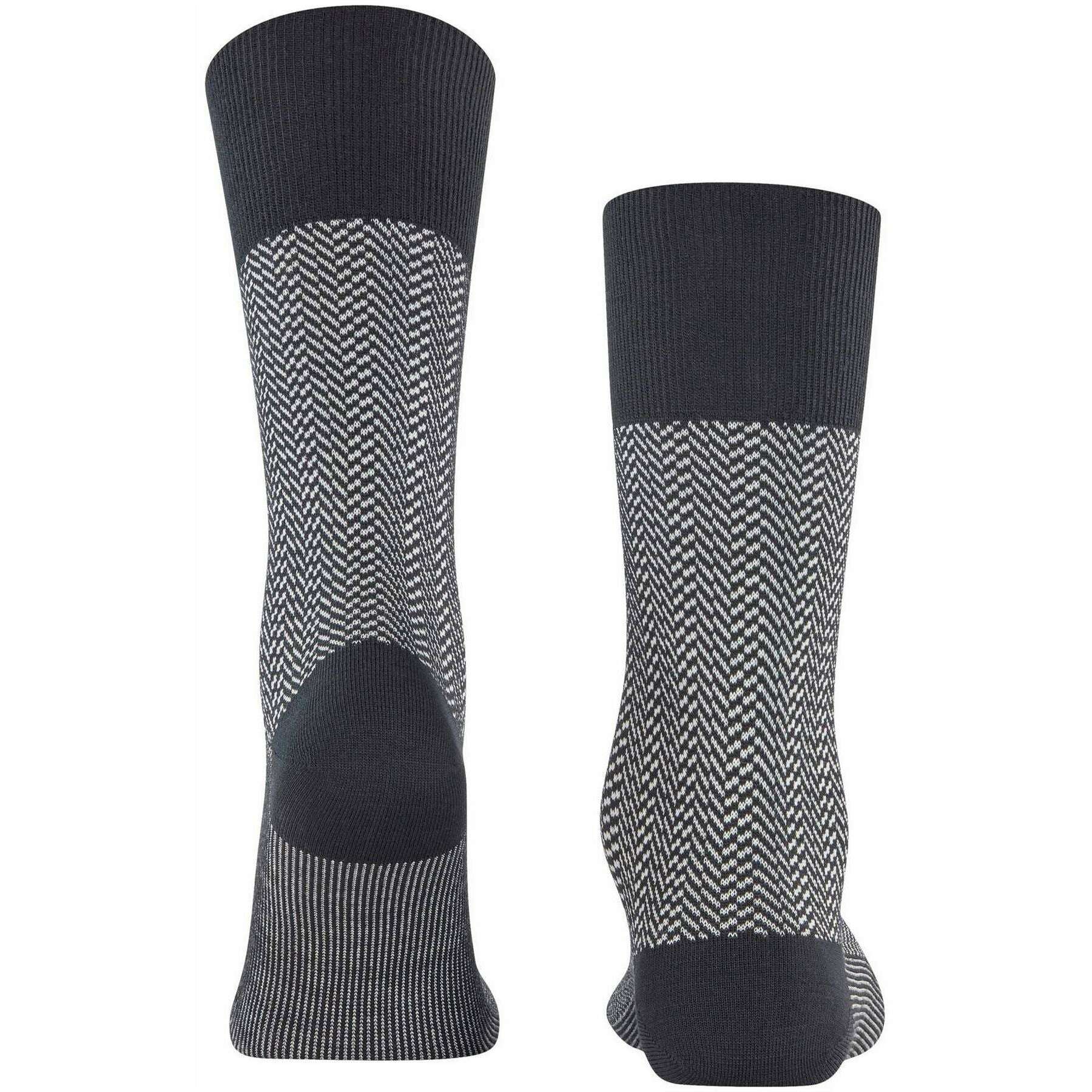 Ces chaussettes à chevrons Airport pour hommes de la marque Falke sont composées de 62% laine vierge, 24% polyamide, 13% coton et 1% élasthanne et sont présentées en noir. De plus, les chaussettes noires sont conçues avec un motif à chevrons. Il est recommandé de les laver à 30 degrés pour garder ces chaussettes en bon état. Toutes les chaussettes sont livrées avec des étiquettes Falke. Les chaussettes Falke Airport Herringstripe - Noir sont tissées avec la combinaison correcte de laine mérinos légère et régulatrice du climat à l'extérieur et de coton doux et agréable à l'intérieur. Pour le travail ou les loisirs, ces chaussettes ont des revers allongés pour un ajustement froissé sur la jambe. Le motif à chevrons bicolore réinterprété ajoute une touche moderne et élégante et confère une touche particulière à n'importe quelle tenue. Restez à l'aise toute la journée avec la coupe Falke Perfect et profitez de porter ces chaussettes encore et encore avec une durabilité optimale grâce aux zones de contrainte renforcées.