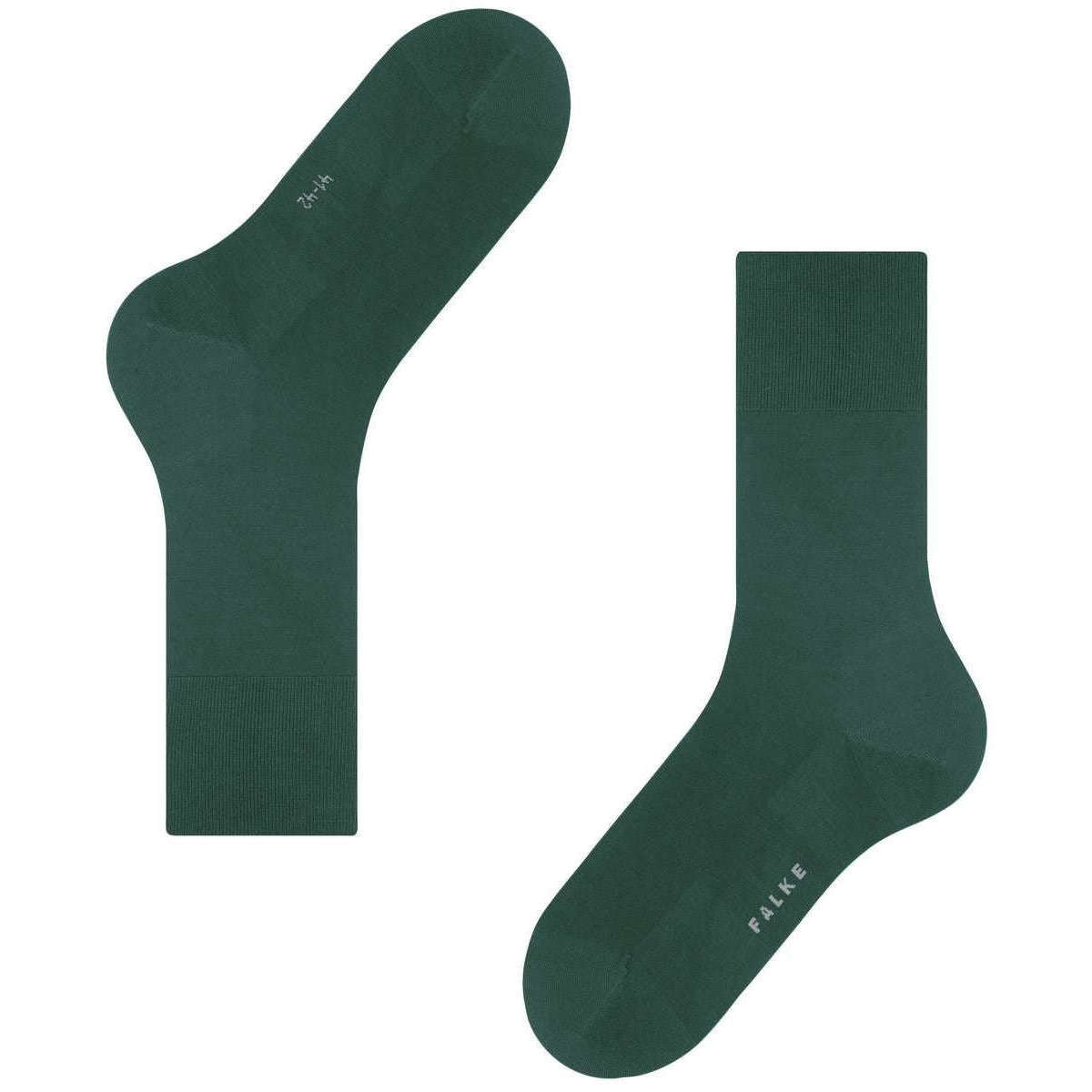 Designer Falke have brought you these men's 50% polyamide (12% recycled), 24% wool, 24% lyocell and 2% elastane socks using hunter green tones. Also the hunter green socks are designed in a plain pattern, It is recommended to wash at 30 degrees to keep these socks in good condition. All the socks come complete with falke sock tags. The Falke Climawool Socks - Hunter Green give comfort, quality and durability. The perfect blend of Merino wool and TENCEL ™ Lyocell ensure a pleasantly light and soft feel on your feet. The FALKE ClimaWool also scores in terms of sustainability: TENCEL™ is a biodegradable fibre that is obtained from sustainably grown, FSC-certified eucalyptus wood. These socks deliver a secure fit, while the temperature-regulating, moisture-regulating and odour-neutralising materials, keep your feet dry and cool. The Beta Spun technology ensures a durability that you can count on. With the Falke Perfect Fit and being part of the FALKE-WE-CARE range, these socks are the perfect addition to your wardrobe.