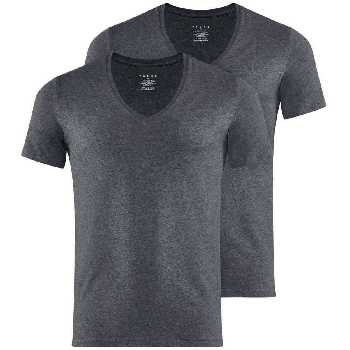 T-shirt Falke Daily Comfort en V Deep à col en 2 pack - Heather gris foncé
