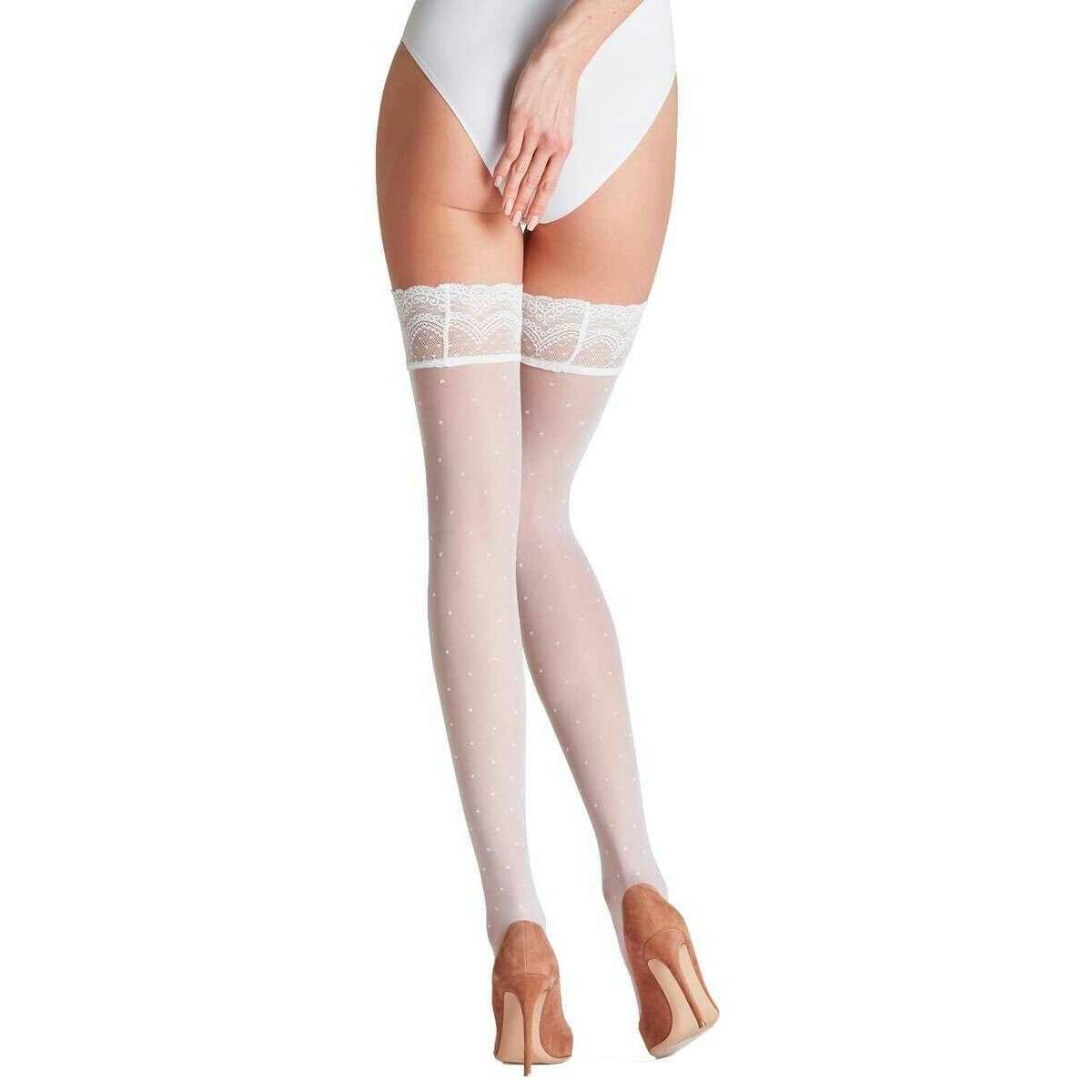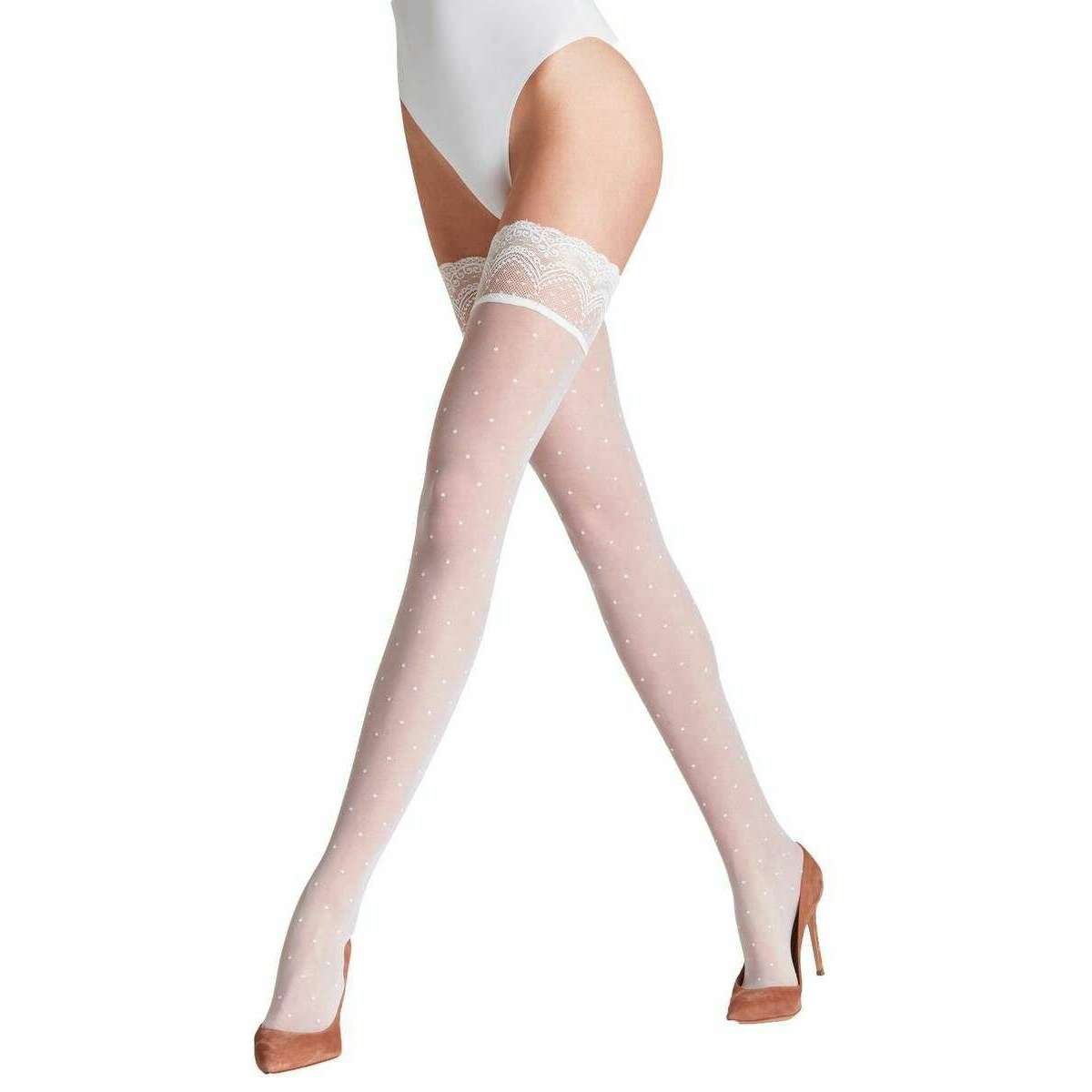 (Ot . Les bas blancs sont également conçus dans un motif à pois, il est recommandé de se laver à 30 degrés pour maintenir ces bas en bon état. Tous les bas sont livrés avec Falke Packaging. Le Denier Falke Dot 15 Stay Ups - White donne un haut niveau de confort imbattable que vous méritez. Avec une apparence de 15 deniers et un processus de tricot de haute qualité, ces séries vont parfaitement avec n'importe quelle tenue et occasion. Le haut en dentelle délicat avec un revêtement en silicone sans glissement garantit que ces séries restent en place toute la journée. Entrez dans une indulgence luxueuse avec Falke Perfect Fit. Ces restes transparents avec des points de polka modernes sont le point culminant cette saison! "! =" "]})