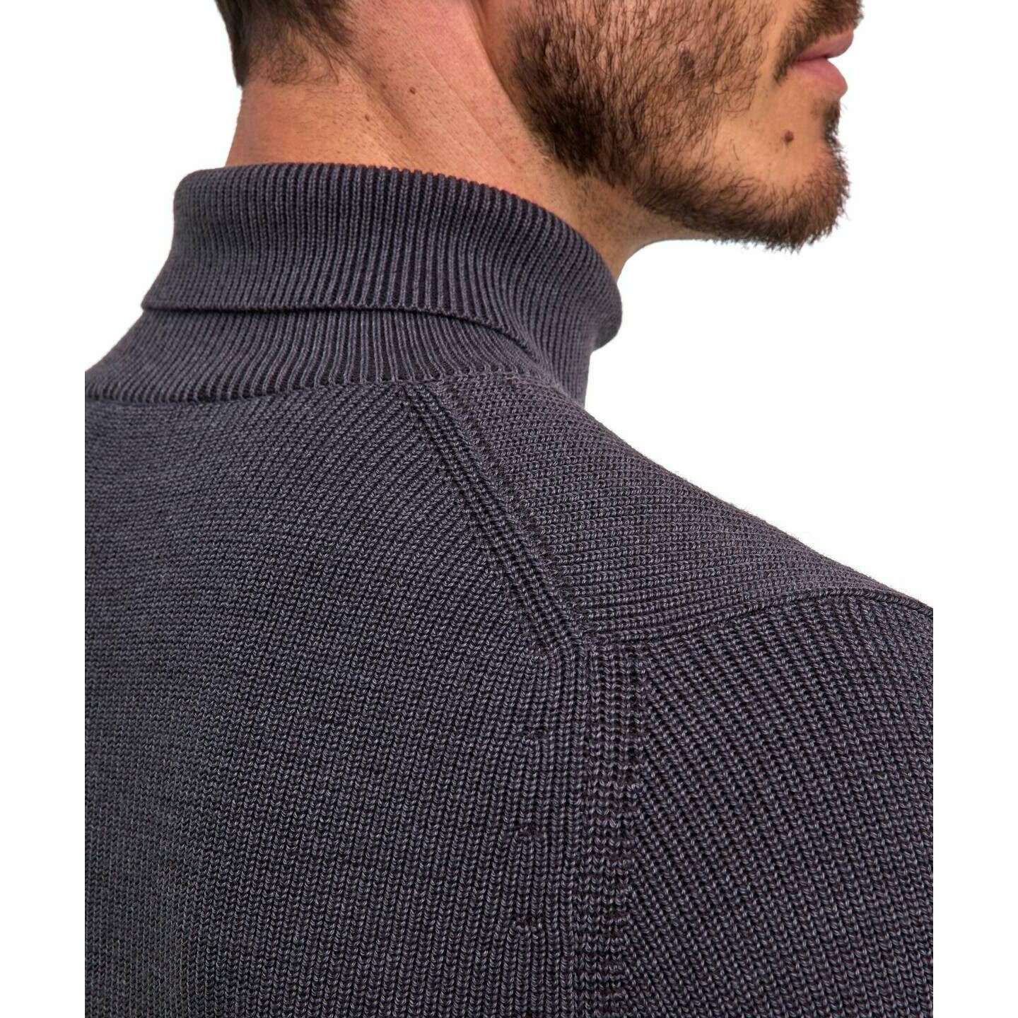 • Coton biologique certifié, laine vierge, coupe classique, texture Bead Catch, haute qualité, traitement « entièrement façonné », épaules françaises, poignets côtelés, résistant.