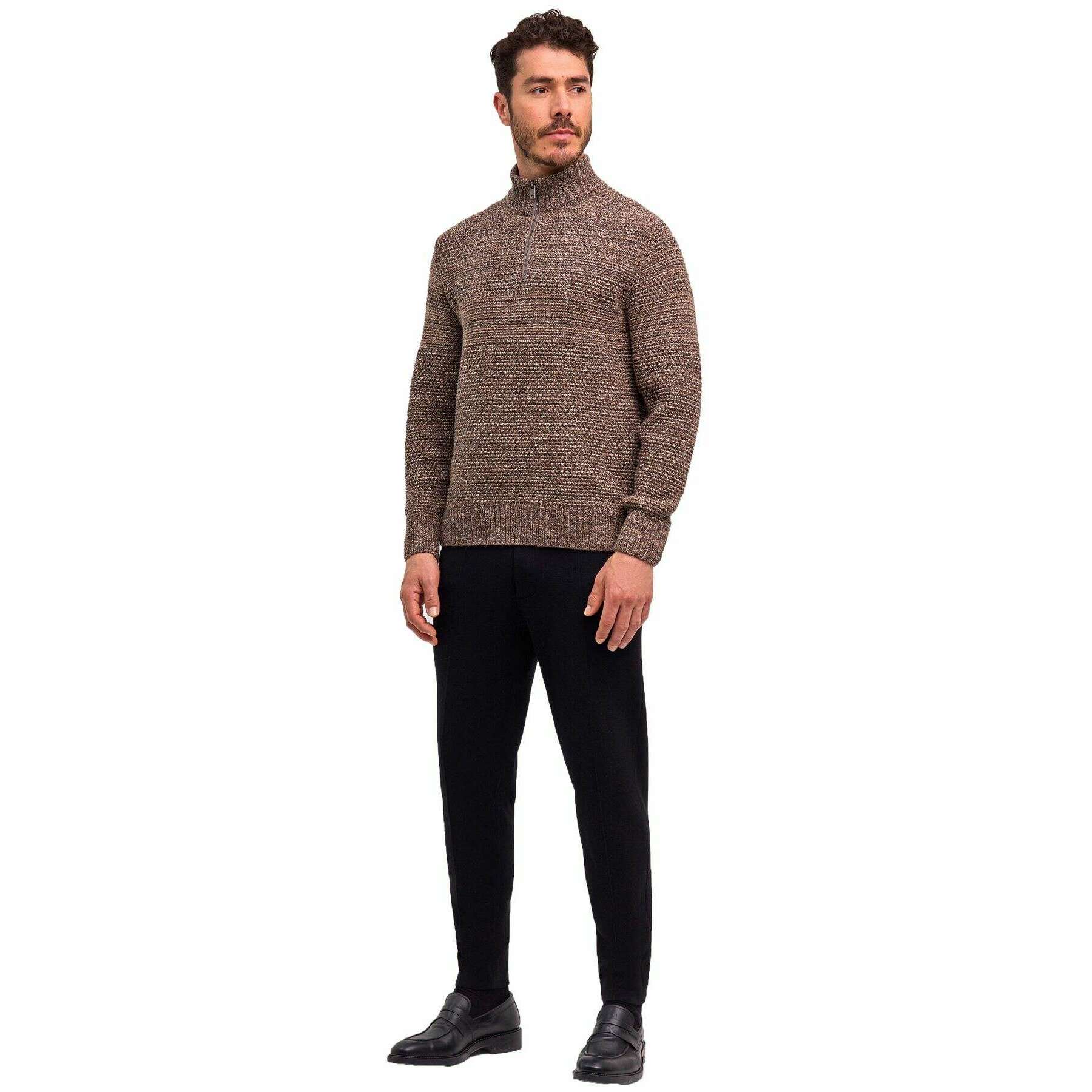 • Grosse maille, poitrine rayée, coupe classique, épaules françaises, col côtelé, poignets côtelés, traitement « entièrement façonné » de haute qualité.