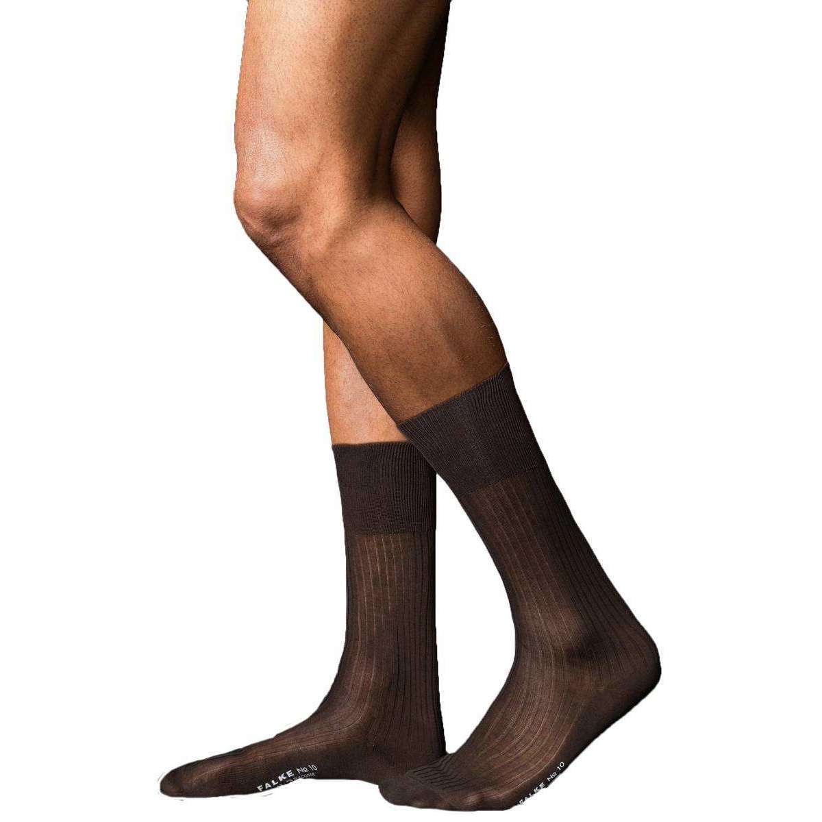 Falke No10 Pure Fil d'Ecosse Chaussettes en tricot côtelé lisses - marron