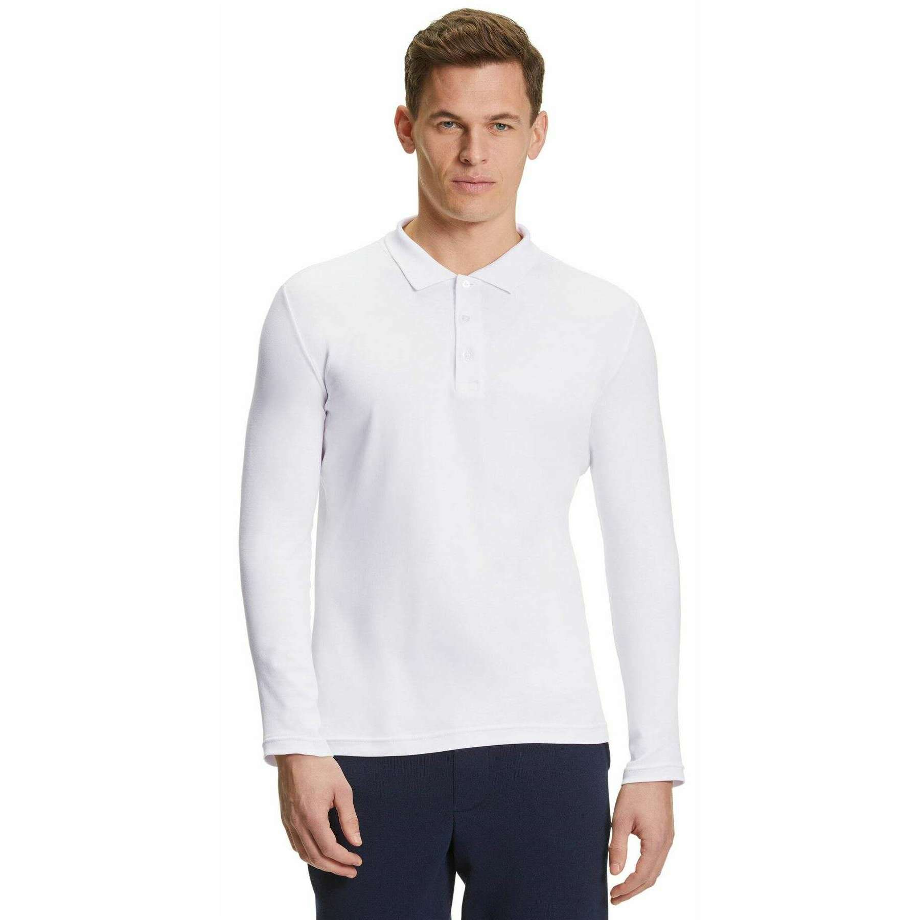 Falke Pima Interlock Polo à Manches Longues - Blanc