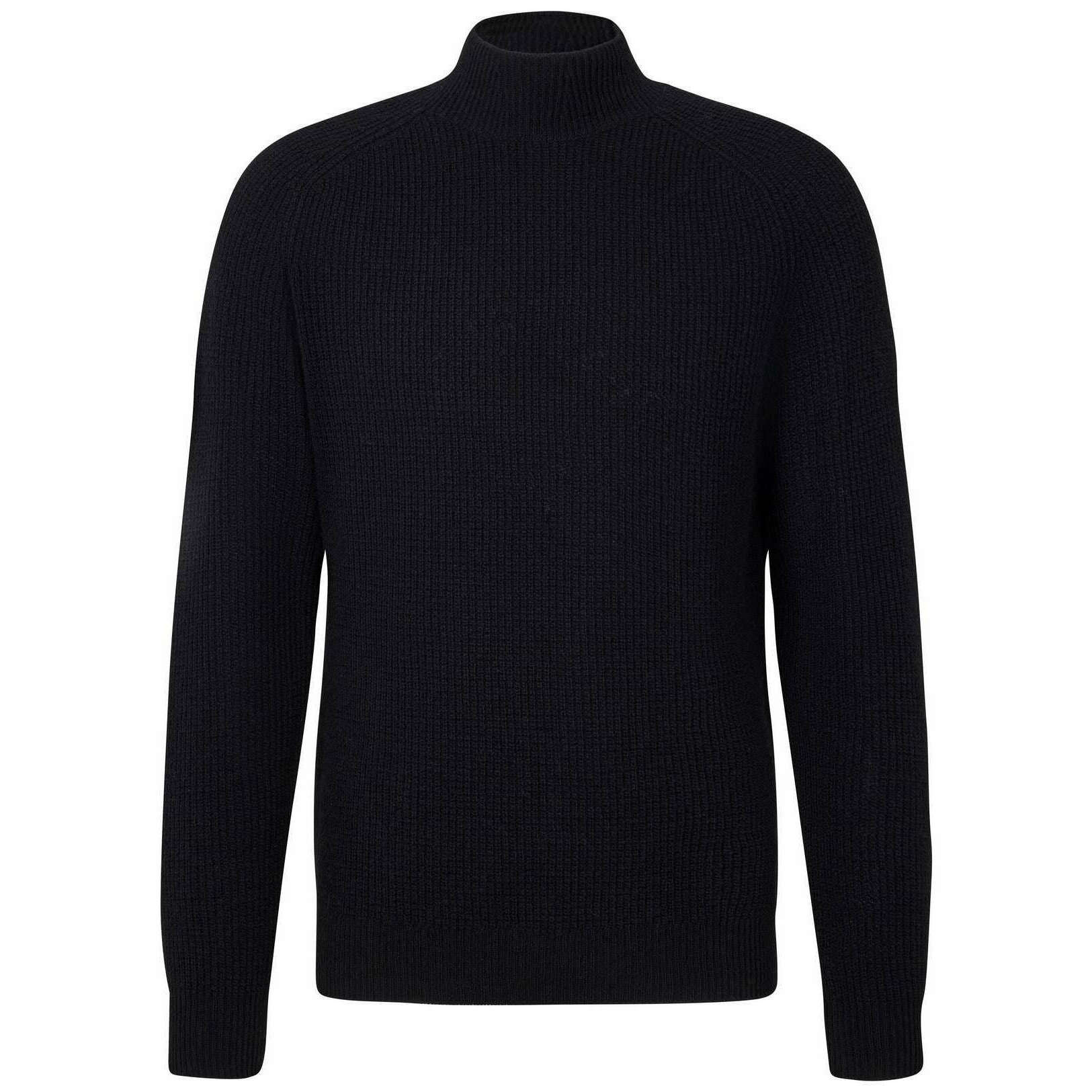Falke Pull à Col Montant Côtelé en Laine d'Agneau - Noir