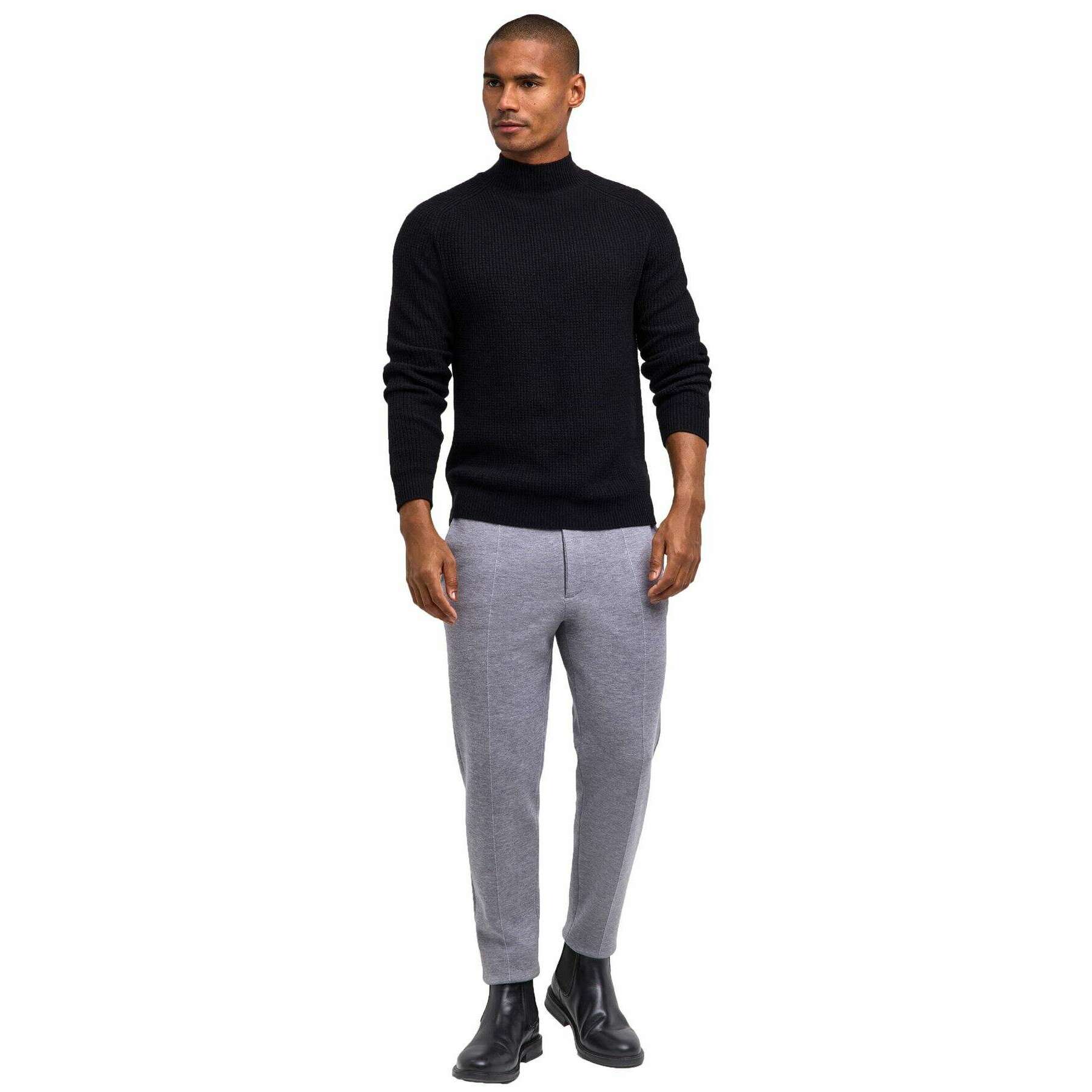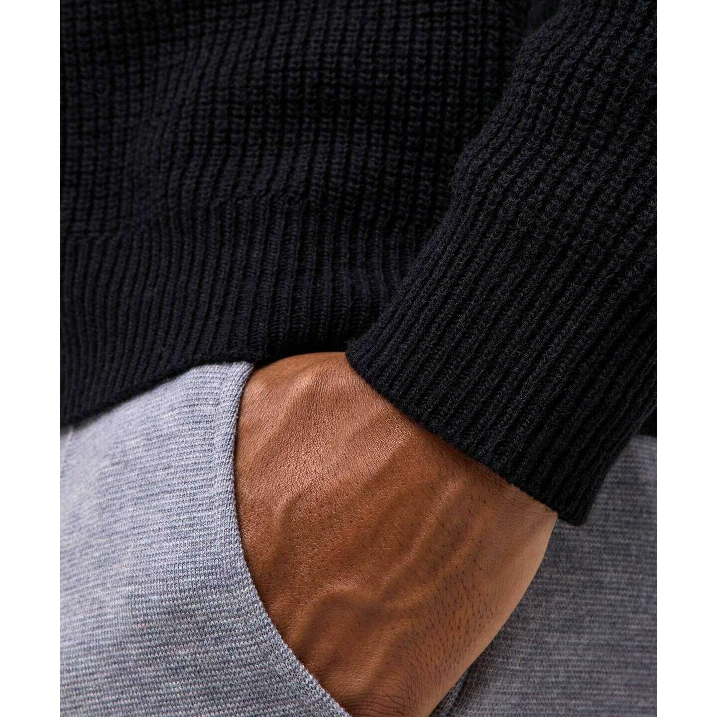 • Col montant, tricot à l'envers, respectueux de l'environnement, coupe classique, épaules en forme de selle, poignets et ourlet côtelés, texture attrape-perles, traitement « entièrement façonné » de haute qualité.