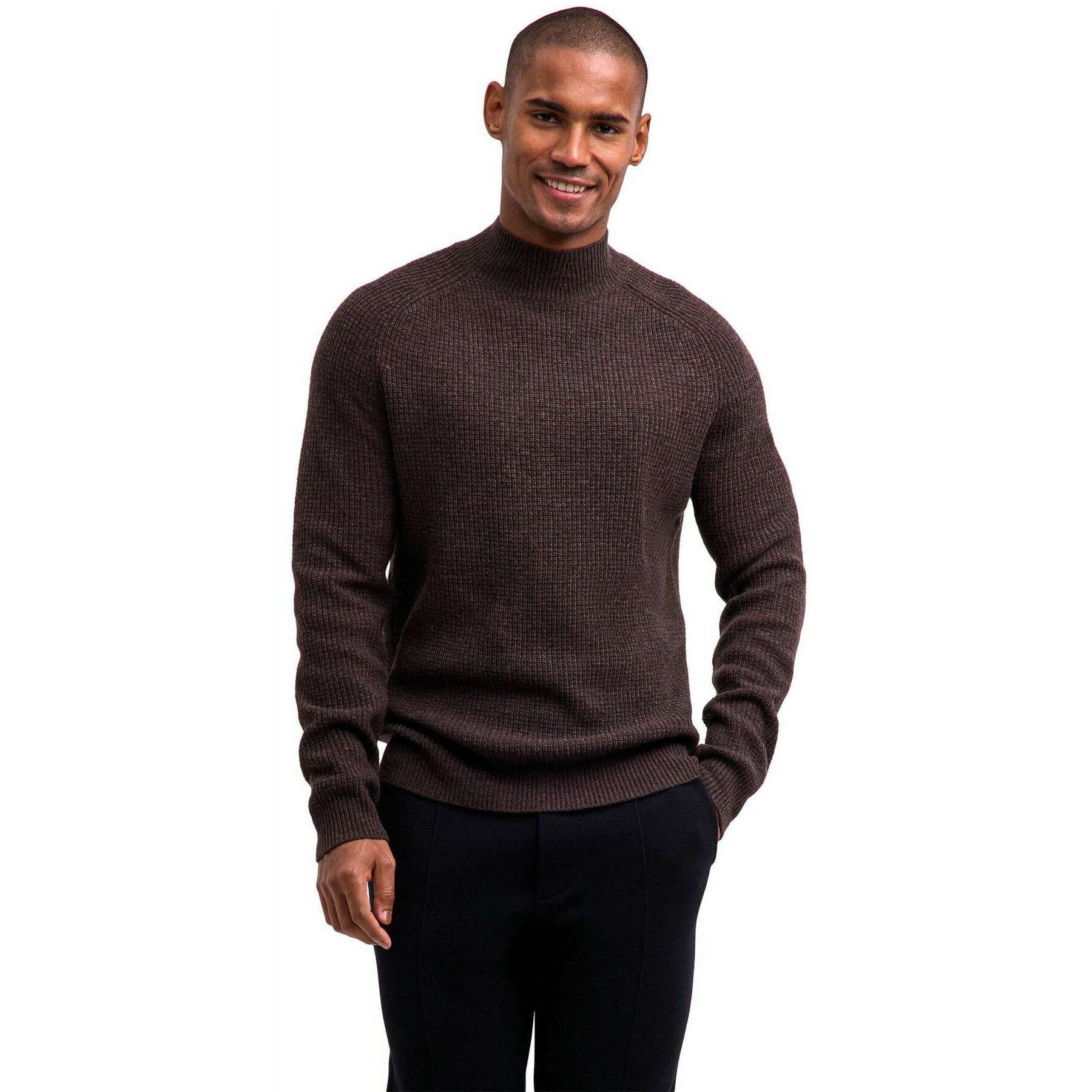 Falke Pull Côtelé à Col Montant en Laine d'Agneau - Buckeye Brown Mel