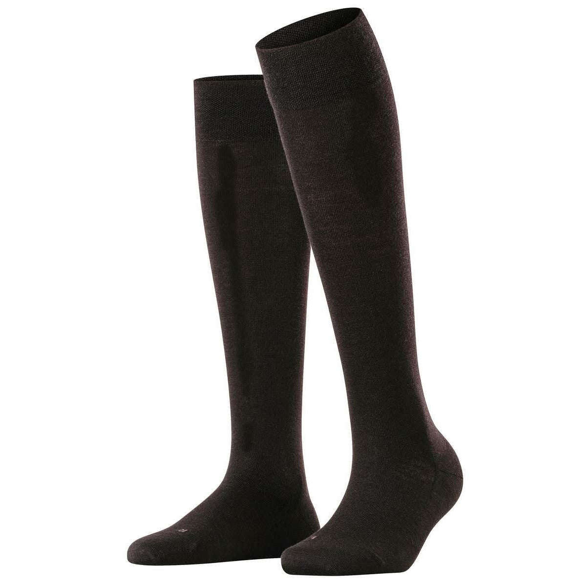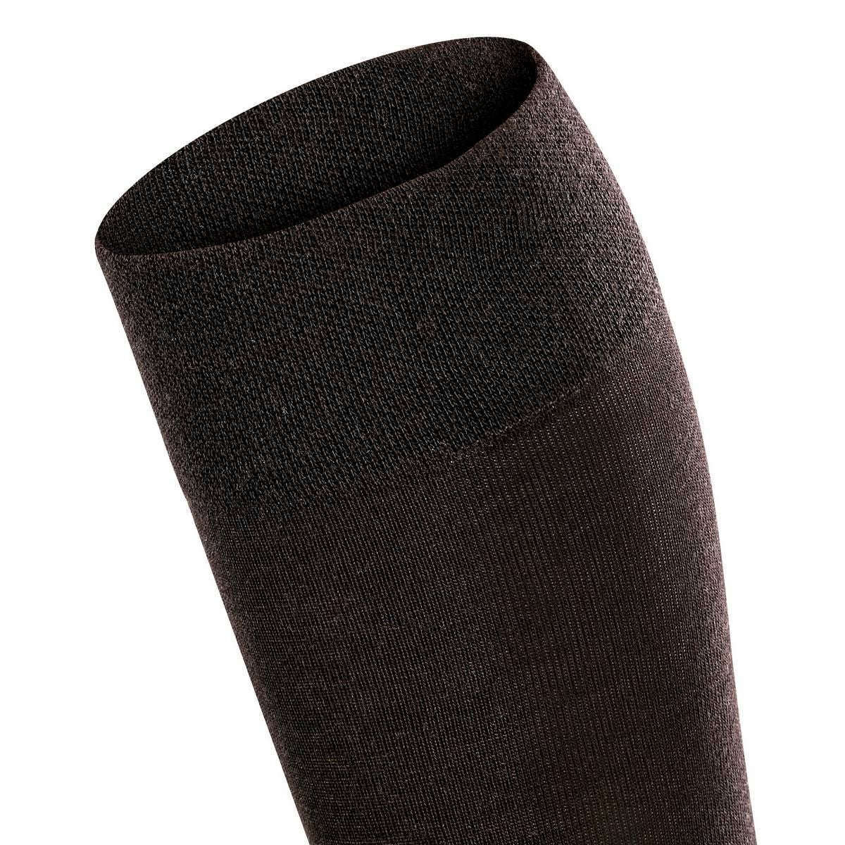 These women's sensitive berlin knee high socks by the brand Falke are made from 60% virgin wool, 20% cotton, 19% polyamide and 1% elastane and are showcased in black. Also the black socks are designed in a plain pattern, It is recommended to wash at 30 degrees to keep these socks in good condition. All the socks come complete with falke sock tags. The Falke Sensitive Berlin Knee High Socks - Black are designed to be warm and comfortable, with temperature regulating wool on the outside and sustainable, skin flattering cotton on the inside. The wool processed comes exclusively from farms that do not practice mulesing with animal welfare in mind. The cotton is grown, harvested and processed in a resource-saving and socially responsible manner so you can be sure your being kind to the planet. These socks boast soft comfortable cuffs and flat overcast seams for a pressure-free fit on the legs and feet, which are suitable for diabetics and women with pressure-sensitive legs. The reinforced stress zones on these knee-high socks, offer optimal durability.
