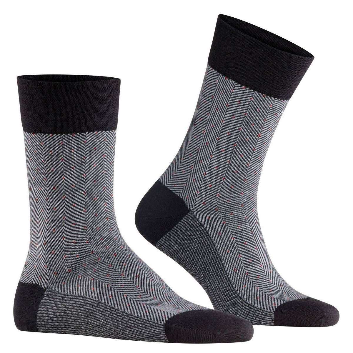 These men's sensitive herringbone socks have been made from 58% virgin wool and 42% polyamide, featured in a black colour and are from the brand Falke. Also the black socks are designed in a herringbone pattern, It is recommended to wash at 30 degrees to keep these socks in good condition. All the socks come complete with falke sock tags. The Falke Sensitive Herringbone Socks - Black are made with a light climate regulating merino wool blend for your comfort. Reinforced stress zones for durability you can count on. These traditional herringbone pattern socks offer a comfort cuff for pressure free hold on legs, and are suitable for diabetics and males with pressure-sensitive legs. A Falke Perfect Fit, these comfortable socks will add a tasteful touch to any outfit.