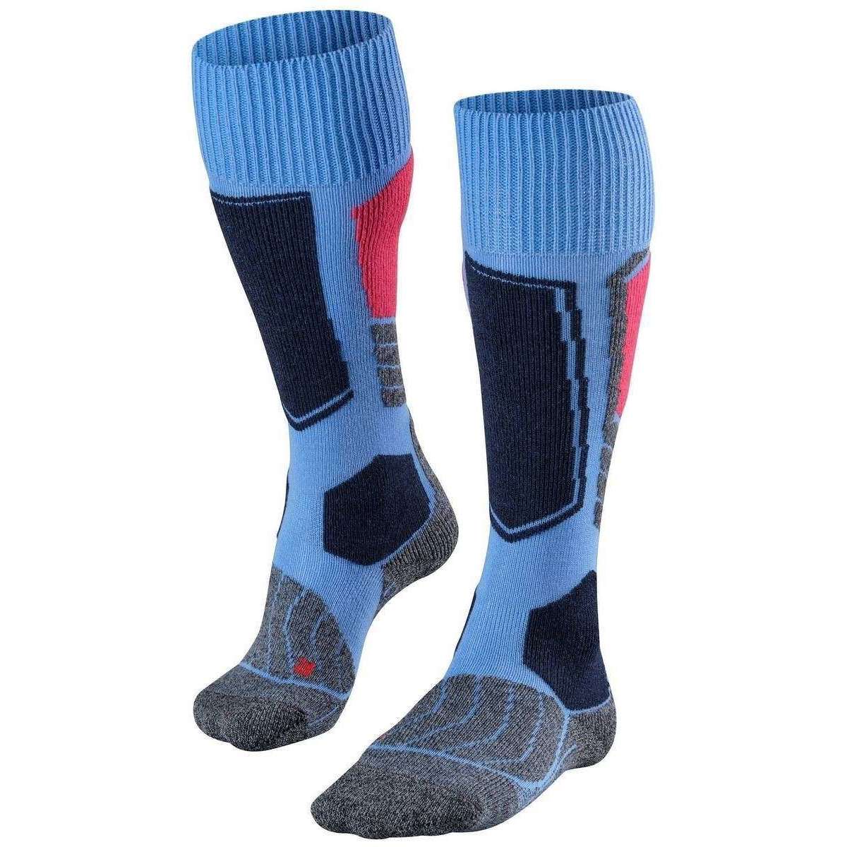 These women's skiing 1 knee high socks by the brand Falke are made from 44% polypropylene, 24% acrylic, 20% wool, 7% polyamide and 5% silk and are showcased in blue. Also the blue note socks are designed in a block pattern, It is recommended to wash at 30 degrees and do not tumble try or iron to keep these socks in good condition. All the socks come complete with falke tags. The Falke Skiing 1 Knee High Socks - Blue Note have been manufactured with superior thermal insulation due to their flawless materials. Perfect for casual skiers, these have extra-strength cushioning and have fast moisture transport provided by their triple-layered structure. These socks are perfect for any woman to own as they will also keep you looking stylish whilst giving you the upmost of comfort and warmth.