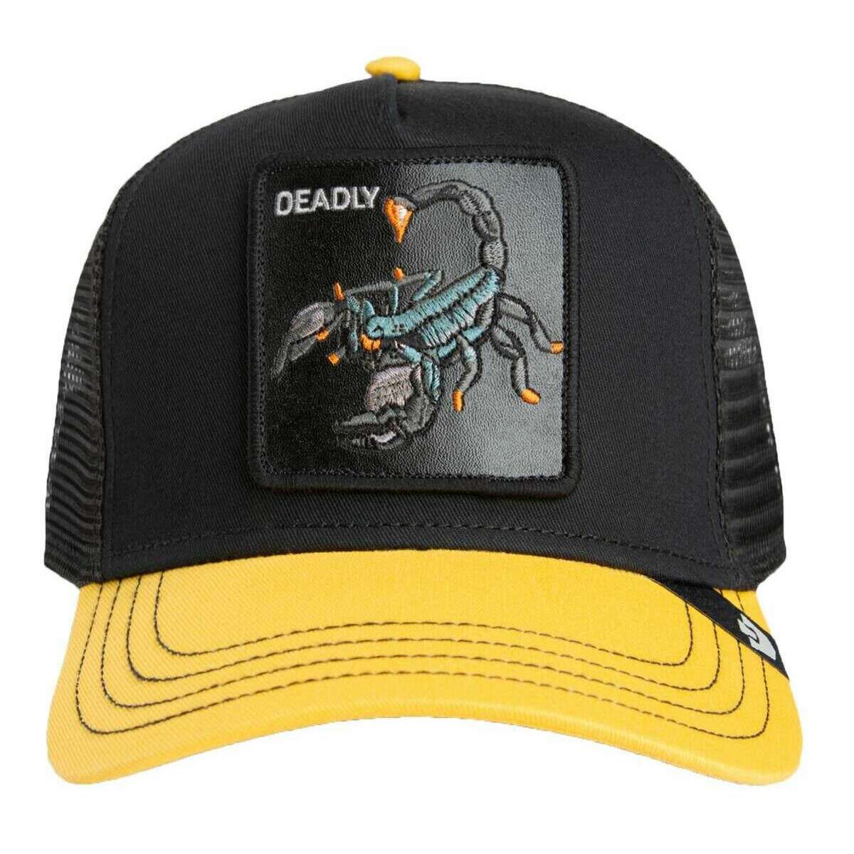 Ce chapeau de camionneur mortel unisexe bien conçu de Goorin Bros est disponible en couleur noire / poutre jaune vide et est fabriqué à partir de 57% de polyester et de coton à 43%. Le chapeau jaune noir / poutre vide est également conçu dans un motif à 2 tons, tous les chapeaux sont complets avec des étiquettes Goorin Bros. Le chapeau de camionneur mortel de Goorin Bros - Void Black / Beam Yellow est un chapeau de camionneur accrocheur qui se démarquera dans n'importe quelle foule. Fait pour être porté par tout le monde et s'adapte le plus dans un dos réglable. Une expérience confortable garantie avec un support en mailles respirantes et un matériau de haute qualité. Ce chapeau présente un scorpion cool sur le devant, parfait si vous voulez faire une déclaration.