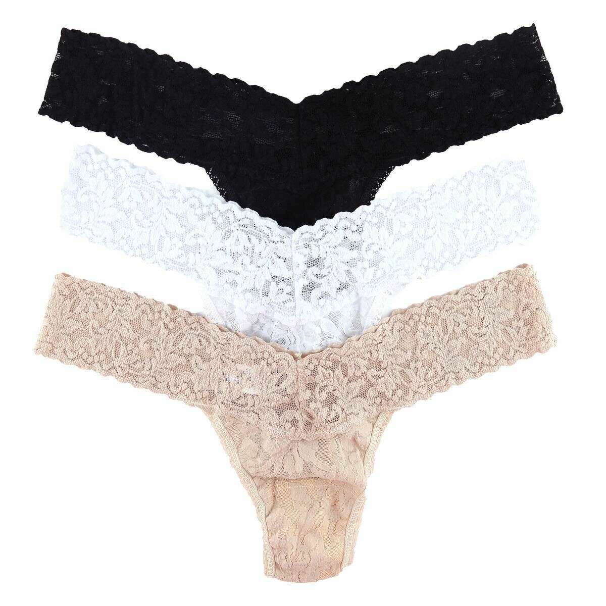 Hanky ​​Panky Signature Lace 3 Pack Low Rise String - Black / White / Chai Beige