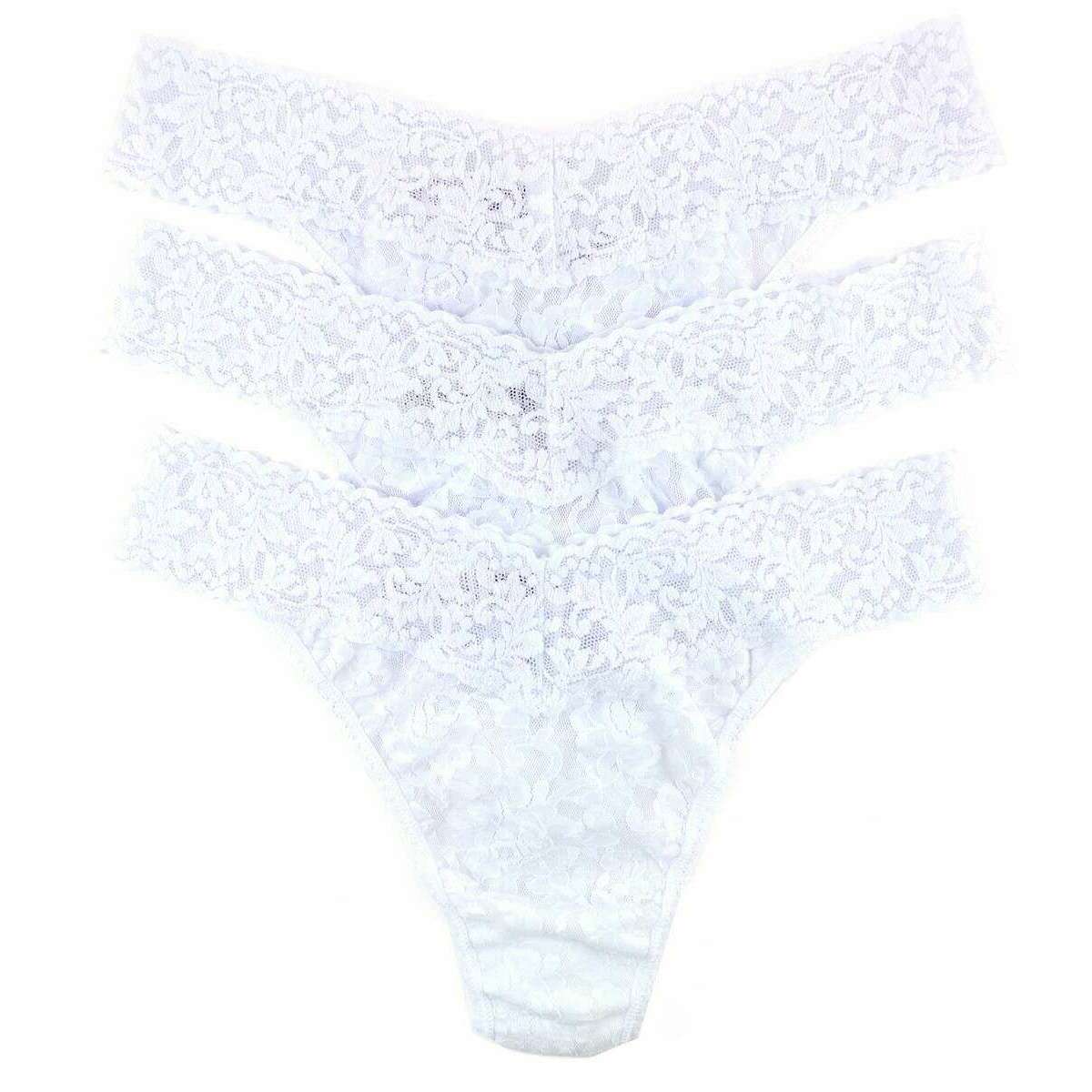 Présentée par la marque Hanky ​​Panky, ce string de montée en dentelle de dentelle 3 blancs pour femmes est fabriqué à partir de corps 100% en nylon, de nylon à 90%, de garniture en spandex à 10% et de doublure entre 100% Supima® en coton. 3 Les sous-vêtements de pack ont ​​un rapport qualité-prix en veillant à ce qu'ils soient un bon achat, tous les sous-vêtements sont complets dans une boîte cadeau panky hanky. Le string Hanky ​​Panky Signature Lace 3 Pack Original Rise - White est certain à impressionner avec leur ajustement super confortable et leur design féminin. Ces strings ont été parfaitement conçus avec un design qui se trouve plus haut sur les hanches et ne vous donnera aucune ligne de culotte visible lorsque vous portez pour une occasion. Leur ceinture en V-Front et V-Back gardera ces regards élégants toute l'année. Faites-les les nouveaux sous-vêtements les plus idéaux que vous pouvez acheter.