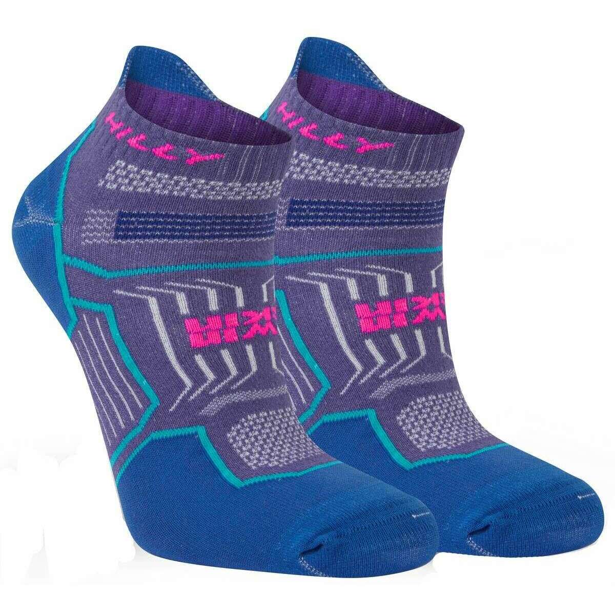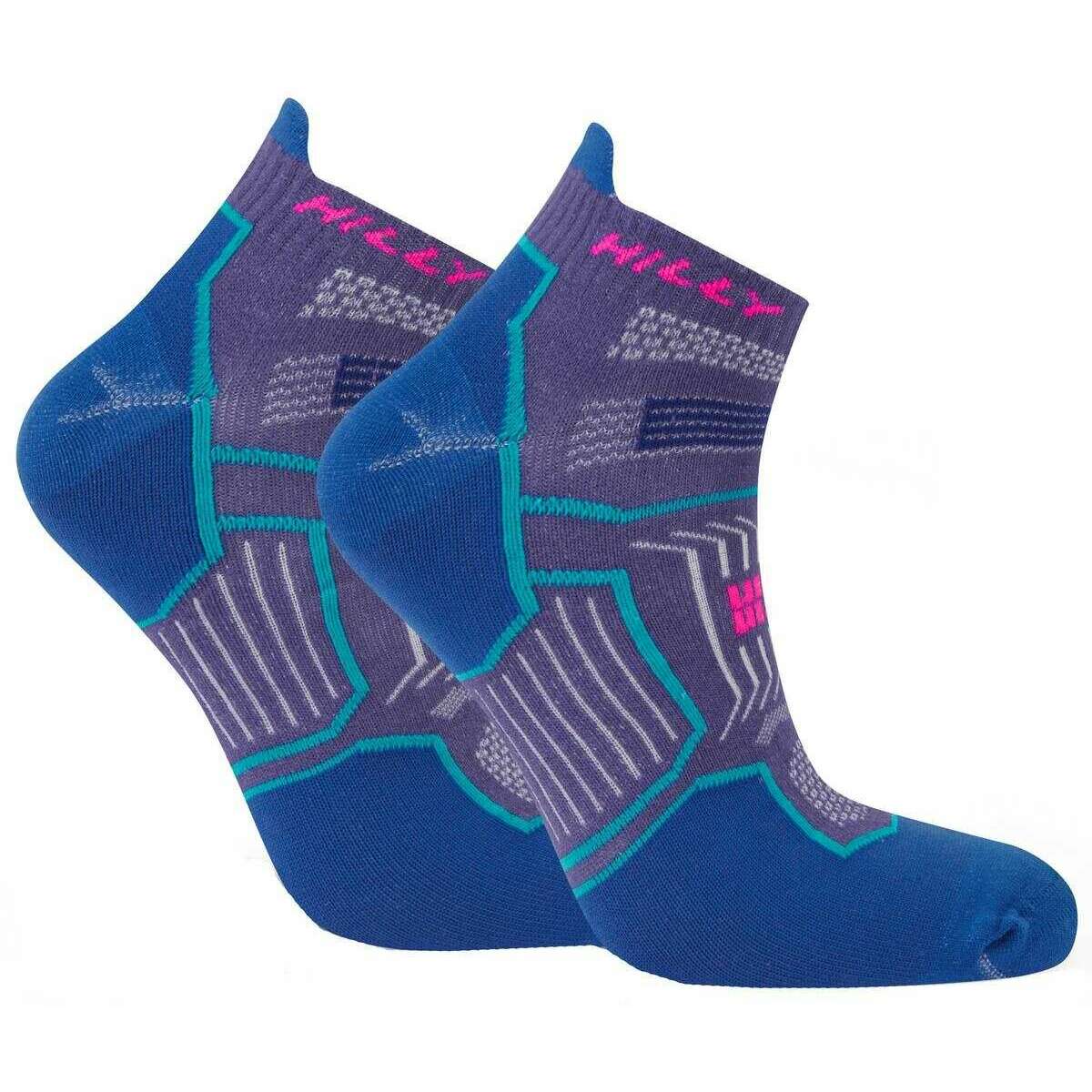 Présentés par la marque Hilly, ces chaussettes à peau jumeau unisexe violet / bleu de raisin sont fabriquées à 50% de polyamide (nylon), 22% de polyester (Drirelease®), 21% de polyamide (Q-Skin®), 4% de coton (Drirelease®) et 3% élastique (Lycra® Sport). De plus, les chaussettes violettes / bleues sont conçues dans un modèle de bloc, toutes les chaussettes sont complètes avec des emballages vallonnés. Les chaumes à peau twin vallonnées - Grape Purple / Blue idéal pour le sport, présentent une couche micro-fibre Q-Skin® qui transfère l'humidité de l'intérieur à l'extérieur pour assurer une usure sèche ne provoquant aucune inconfort et un Drirelease® E.C.O. couche externe en coton biologique qui a un grand taux de séchage. Son haut à pavillon respirant garantit que vos pieds ne surchauffent pas et ne provoquent pas mal à l'aise et que la poignée arc, à plat sous l'orteil et le talon en forme de Y empêche le glissement et le frottement. Le matériau sport LYCRA® et l'amorti moyen assure un confort, un ajustement, une forme et des performances durables afin que ces chaussettes conserveront ses excellentes caractéristiques pour les années à venir. Ce sont la paire de chaussettes anti-Blister ultime, parfaite pour tout coureur.