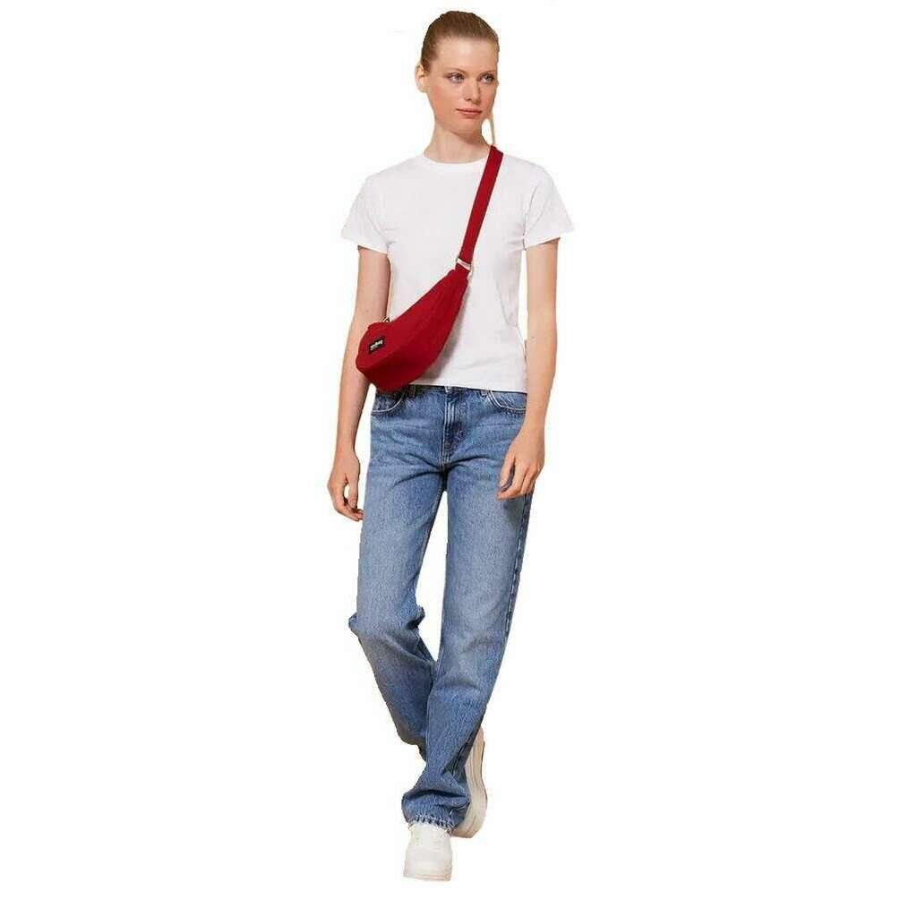• Sangle organique, recyclée et réglable, ouverture zippée, poche arrière zippée