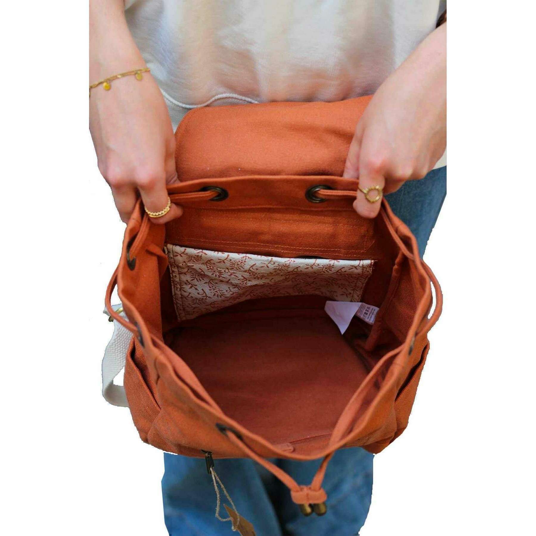 Ce mini sac à dos unisexe Eliot a été fabriqué à partir de coton 100% biologique, présenté dans une couleur rouge et provient du sac postérieur de la marque. Il mesure 31 cm (hauteur) x 24 cm (largeur) x 13 cm (profondeur). Tous les sacs sont livrés avec un emballage de sac d'histoire. Le sac à dos de la basse Eliot Small Small Backpack - Sienna Orange convient aux jeunes et aux grands! Avec deux poches extérieures et une poche intérieure, vous pouvez glisser ce dont vous avez besoin tout en gardant vos mains libres. La conception intemporelle de ce mini sac à dos mélange le charme vintage avec les fonctionnalités modernes, ce qui en fait un choix populaire pour une utilisation quotidienne.