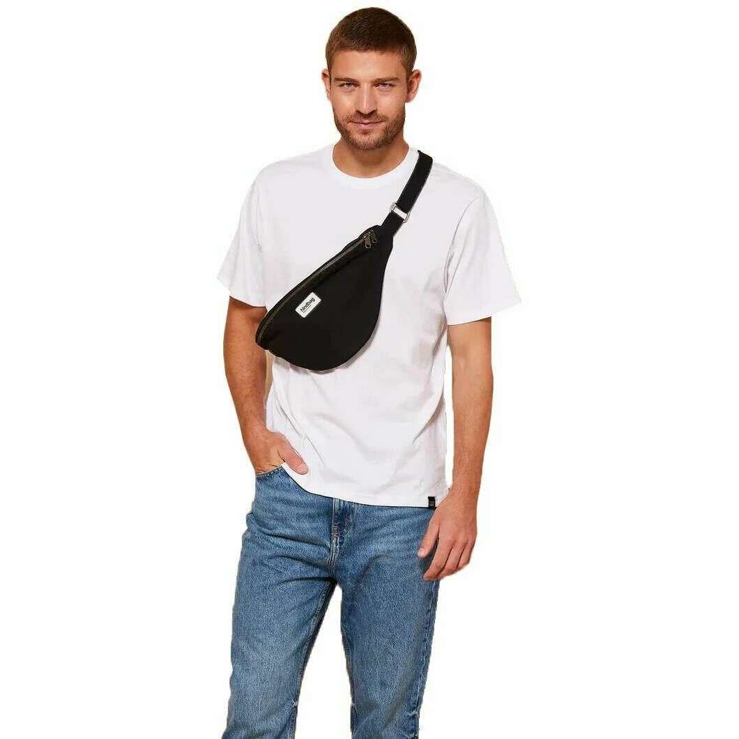 • Sangle organique, recyclée et réglable, poche extérieure, poche intérieure