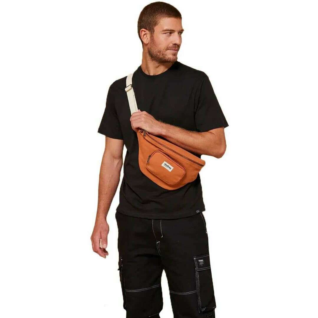 • Sangle organique, recyclée et réglable, 2 poches zippées extérieures