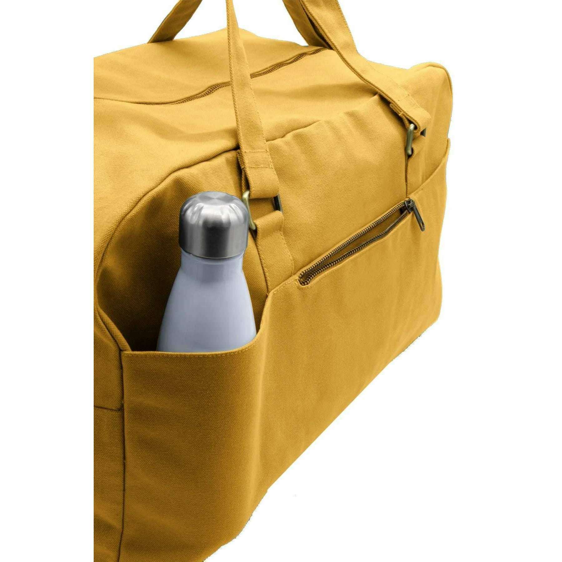 Présenté par le sac postérieur de la marque, ce grand sac de voyage unisexe jaune de safran est fabriqué à partir de coton 100% biologique. Il mesure 33 cm (hauteur) x 54 cm (largeur) x 24 cm (profondeur). Tous les sacs sont livrés avec un emballage de sac d'histoire. Le grand sac de voyage du sac à l'arrière - le jaune de safran est une option spacieuse et écologique pour les voyageurs. Fabriqué à partir de coton biologique épais et certifié GOTS, ce sac propose plusieurs poches pour l'organisation, une fermeture de fermeture à glissière sécurisée et une doublure intérieure imprimée qui ajoute une touche d'élégance. Avec ses poignées et sa grande bandoulière réglable, ce sac peut être facilement transporté à la main ou sur l'épaule.