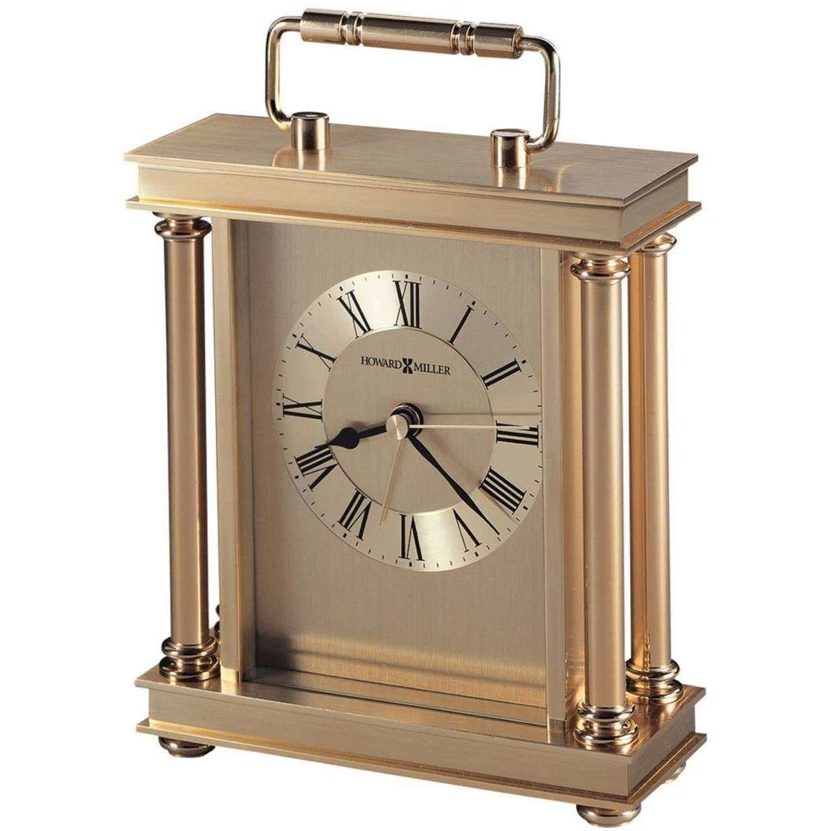 Le designer Howard Miller vous a apporté cette horloge en métal et en verre poli unisexe à l'aide de tons en laiton. Il mesure 19,1 cm (hauteur) x 13,3 cm (largeur) x 5,1 cm (profondeur). Toutes les horloges sont complètes dans l'emballage Howard Miller. L'horloge de table Howard Miller Audra - en laiton présente un cadran en laiton brossé avec une bague numérique coupée en diamant et des chiffres romains noirs, tous sous un panneau en verre. Avec des textures en métal brossées et polies, ce réveil de chariot affiche des colonnes en laiton, des pieds boutonnés et une poignée décorative lui donnant un look élégant et luxueux global. Propulsé par une seule batterie de taille AA.