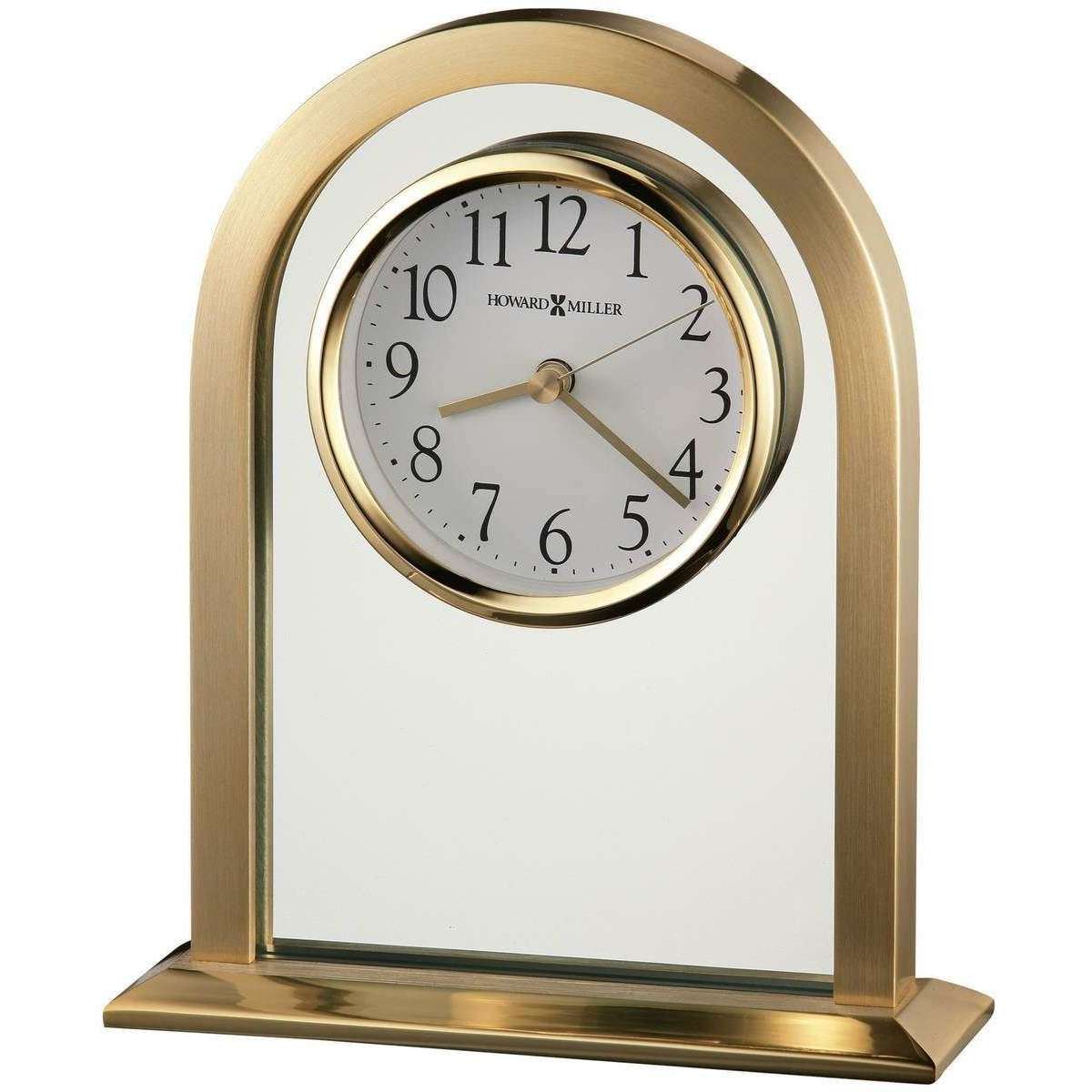 Parfait pour les hommes ou les femmes, cette horloge de table Imperial Howard Miller Gold, elle est également fabriquée à partir de laiton et de verre poli. Il mesure 19,1 cm (hauteur) x 15,9 cm (largeur) x 5,1 cm (profondeur). Toutes les horloges sont complètes dans l'emballage Howard Miller. L'horloge de table Imperial Howard Miller - Gold se compose d'un panneau central en verre contenant un cadran flottant, tous encadrés par du métal en laiton poli et brossé en forme de voûte. Fait soigneusement créé dans un design élégant, cette horloge sophistiquée a un cadran blanc avec des chiffres arabes noirs sous un panneau de verre, entouré d'une lunette brillante. Avec une base métallique polie et polie, cette pièce est alimentée par une seule batterie de taille AA.