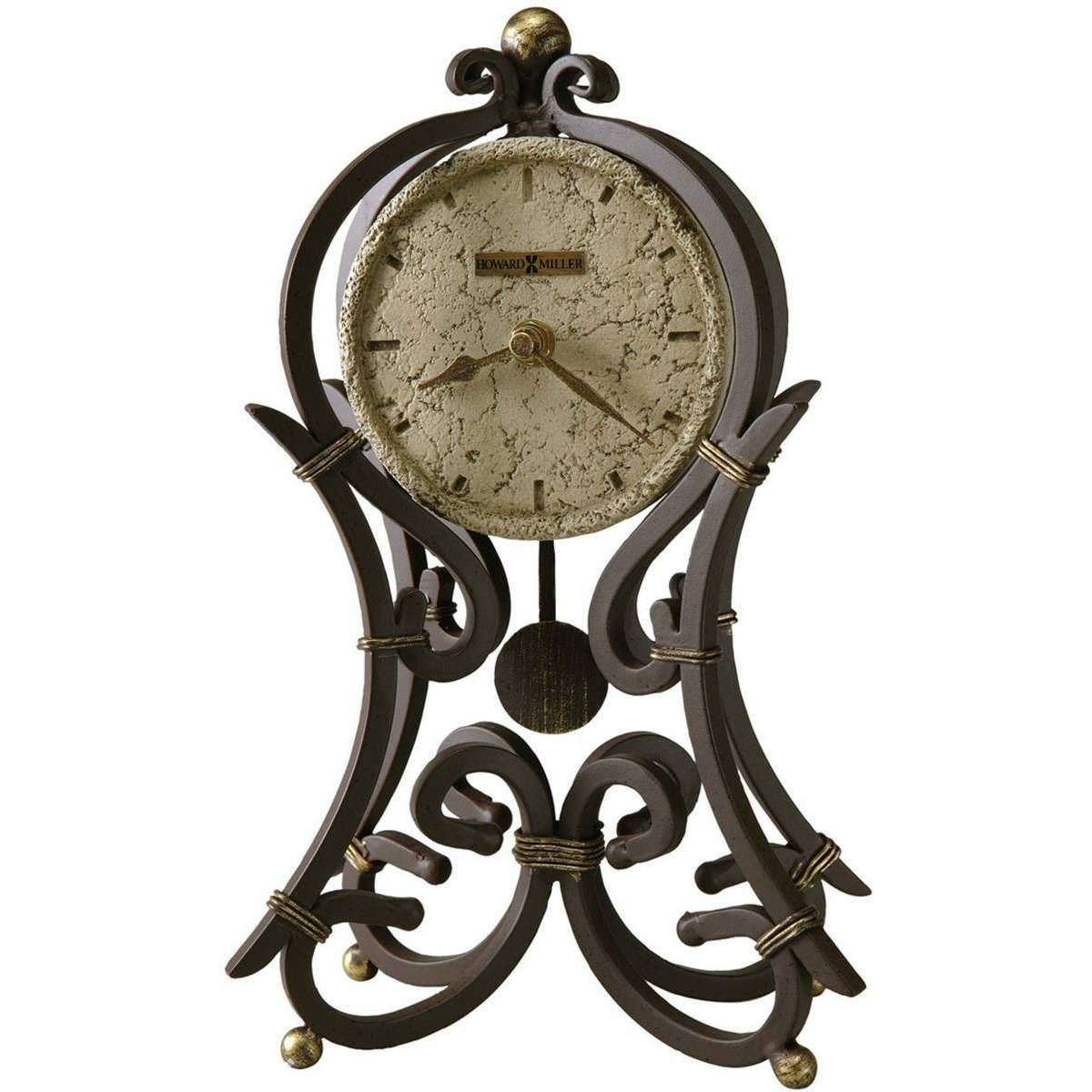 Cette horloge de manteau Vercelli unisexe par la marque Howard Miller est fabriquée à partir de fer vieilli et est présentée en Brown. Il mesure 30,5 cm (hauteur) x 18,4 cm (largeur) x 10,8 cm (profondeur). Toutes les horloges sont complètes dans l'emballage Howard Miller. L'horloge du manteau Howard Miller Vercelli - Dark Brown est une pièce unique avec un cadran en pierre qui a coulé des marqueurs d'heure et un bord extérieur surélevé, complété par des mains en métal vieillies et un pendule. Avec des accents dorés antiques, cette belle horloge a un cadre métallique incurvé complexe et ajoutera du caractère à n'importe quel espace. Fabriquée soigneusement avec des matériaux de haute qualité, cette pièce est alimentée par une batterie de taille AA (non incluse).