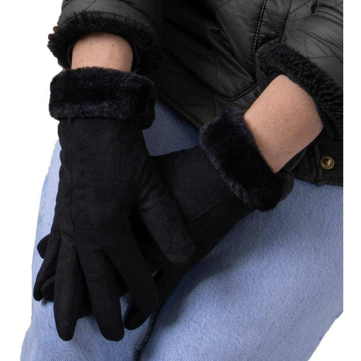 • Manchette en fausse fourrure, faux suède, doublure ultra douce, détails en un point, technologie SmarTouch sur l'index et les pouces.