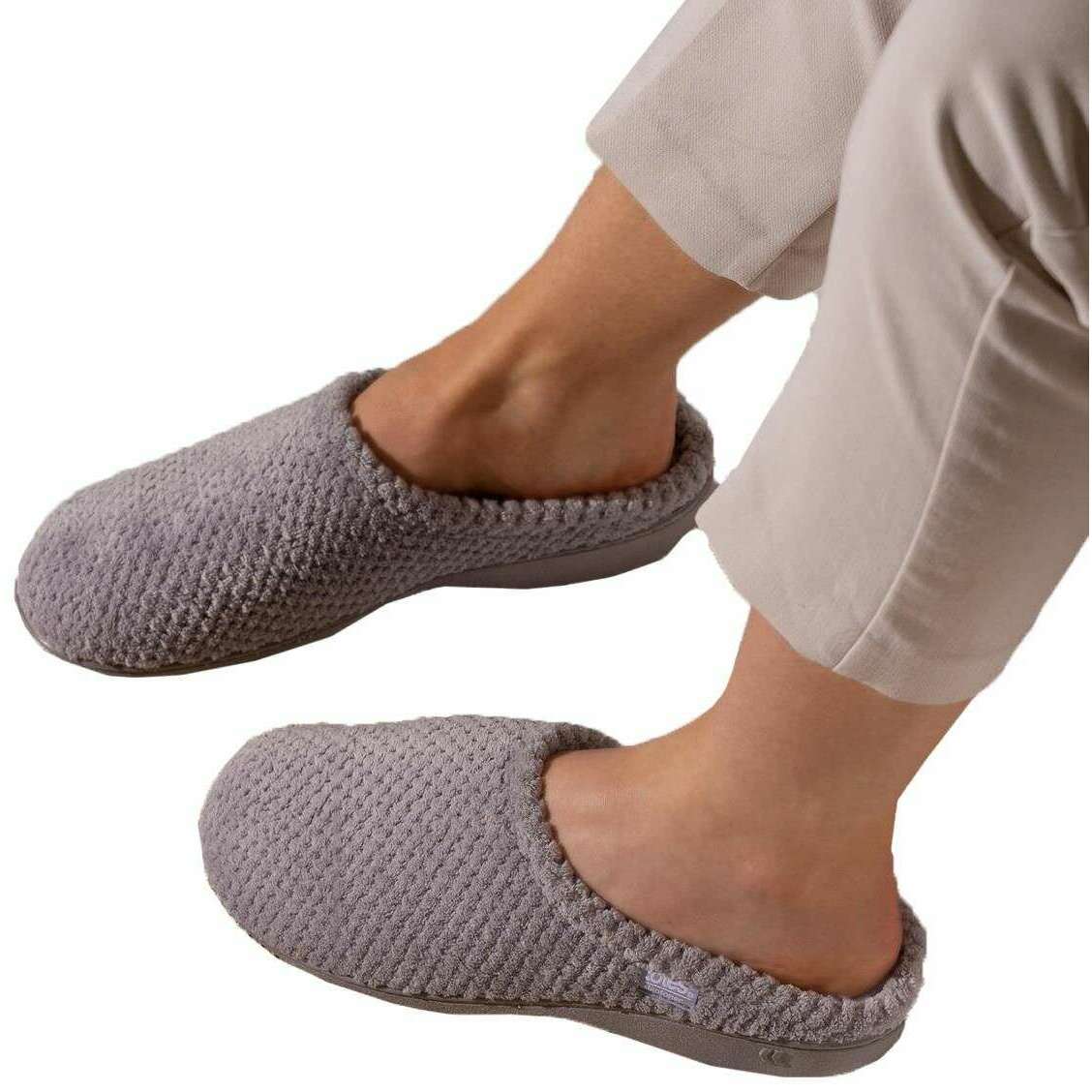 Pantoufles Mules Isotoner Popcorn Terry - Gris Pâle