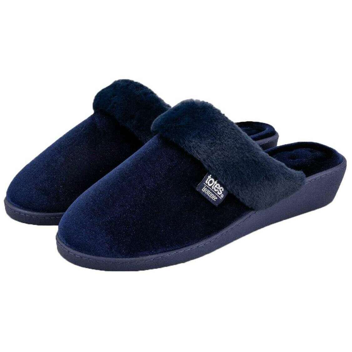 Isotoner Chaussons mules à talons en velours scintillant - Marine
