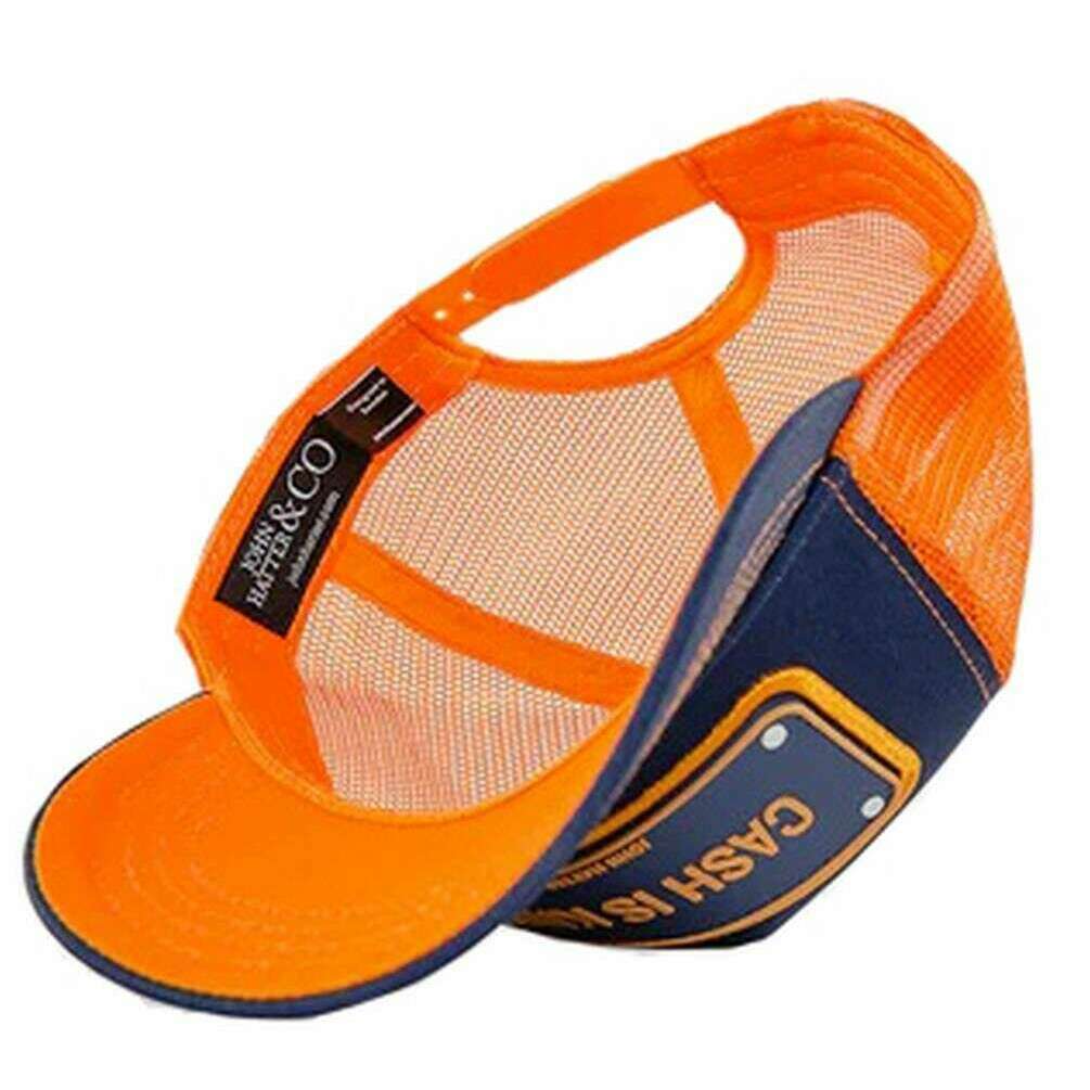 Ce chapeau de camionneur King Rubber Caskys Cash pour hommes ou femmes est façonné par la marque John Hatter de couleur bleue et est fabriqué à 57% de coton et 43% de polyester. Tous les chapeaux sont livrés avec John Hatter Tags. Le Hatter Cash est King Rubber Trucker Hat - Blue / Orange est un chapeau de camionneur à tendance parfait pour la pluie ou le soleil. Ce chapeau bleu et orange dispose d'un support en maille en plastique pour minimiser la transpiration et peut être ajusté avec la fermeture à l'arrière pour s'adapter à n'importe quelle taille. Une plaque en caoutchouc sur le devant présente la phrase en espèces est roi. Composé de matériaux durables, ce chapeau est fait pour durer.