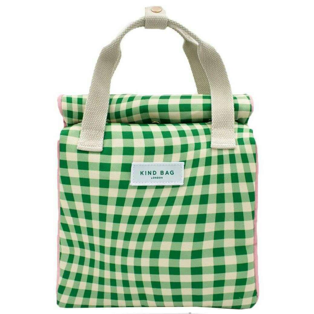 Sac Kind London Sac à lunch - Gingham déformé vert / rose