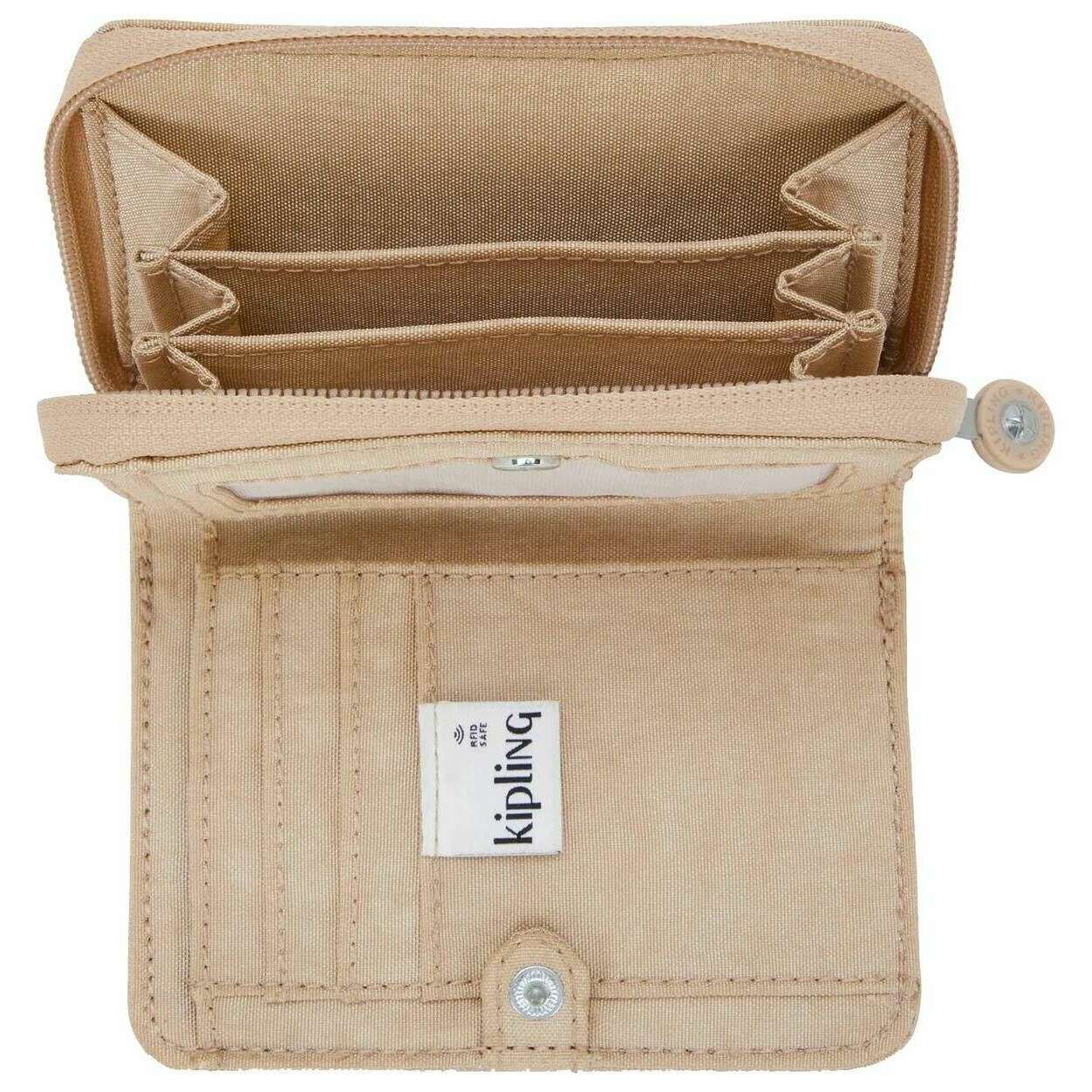 Ce porte-monnaie Money Love pour femme de la marque Kipling est composé à 60 % de polyamide et à 40 % de polyamide recyclé et est présenté en beige. Il mesure 12,5 cm (hauteur) x 9,5 cm (largeur) x 2,5 cm (profondeur). Tous les sacs à main sont livrés dans un emballage Kipling. Le sac à main Kipling Money Love - Sparkled Beige possède des poches innovantes et une fermeture zippée facile pour un design simple mais classique ! Ce portefeuille comprend une protection RFID, qui permet de se prémunir contre l'écrémage sans fil des données de carte de crédit. Idéal pour transporter de l'argent liquide, des cartes et des pièces d'identité, ce portefeuille est compact mais organisé et constitue un bon équilibre entre capacité et portabilité, adapté à ceux qui n'aiment pas les portefeuilles encombrants.