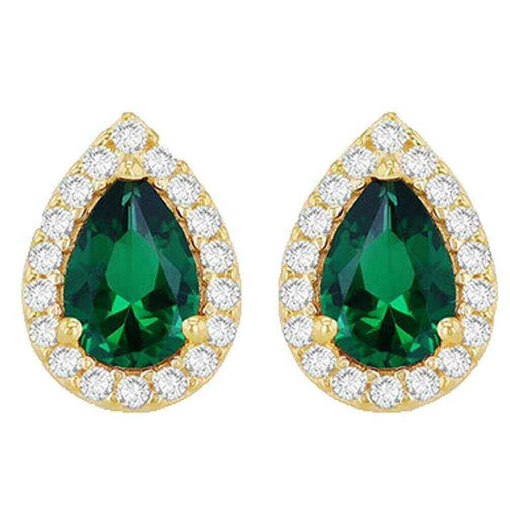 Boucle d'oreille halo en forme de poire KJ Beckett - Or jaune/Vert