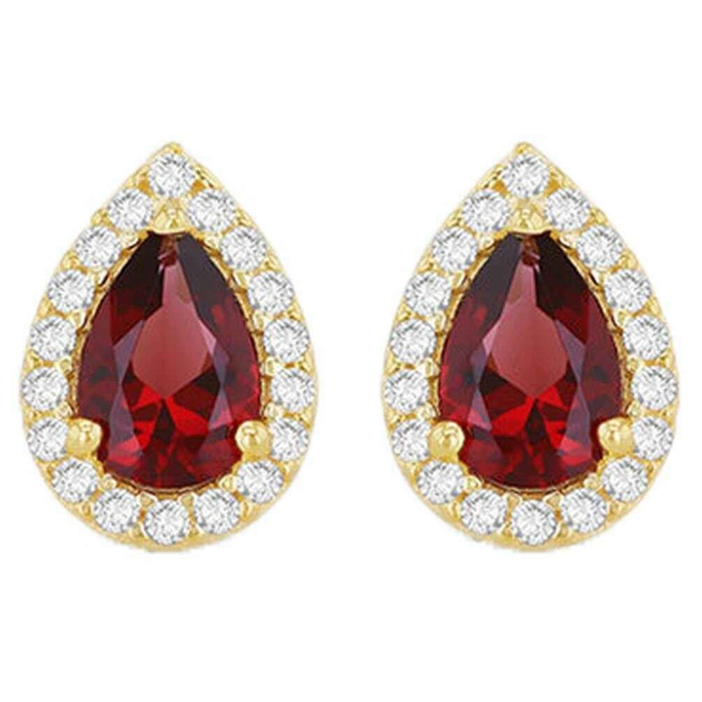 KJ Beckett Boucle d'oreille Halo en forme de poire - Or jaune/Rouge