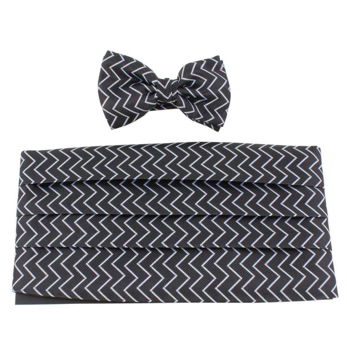 Knightsbridge Neckwear Bow Clip et Cummerbund Set - Black / Silver