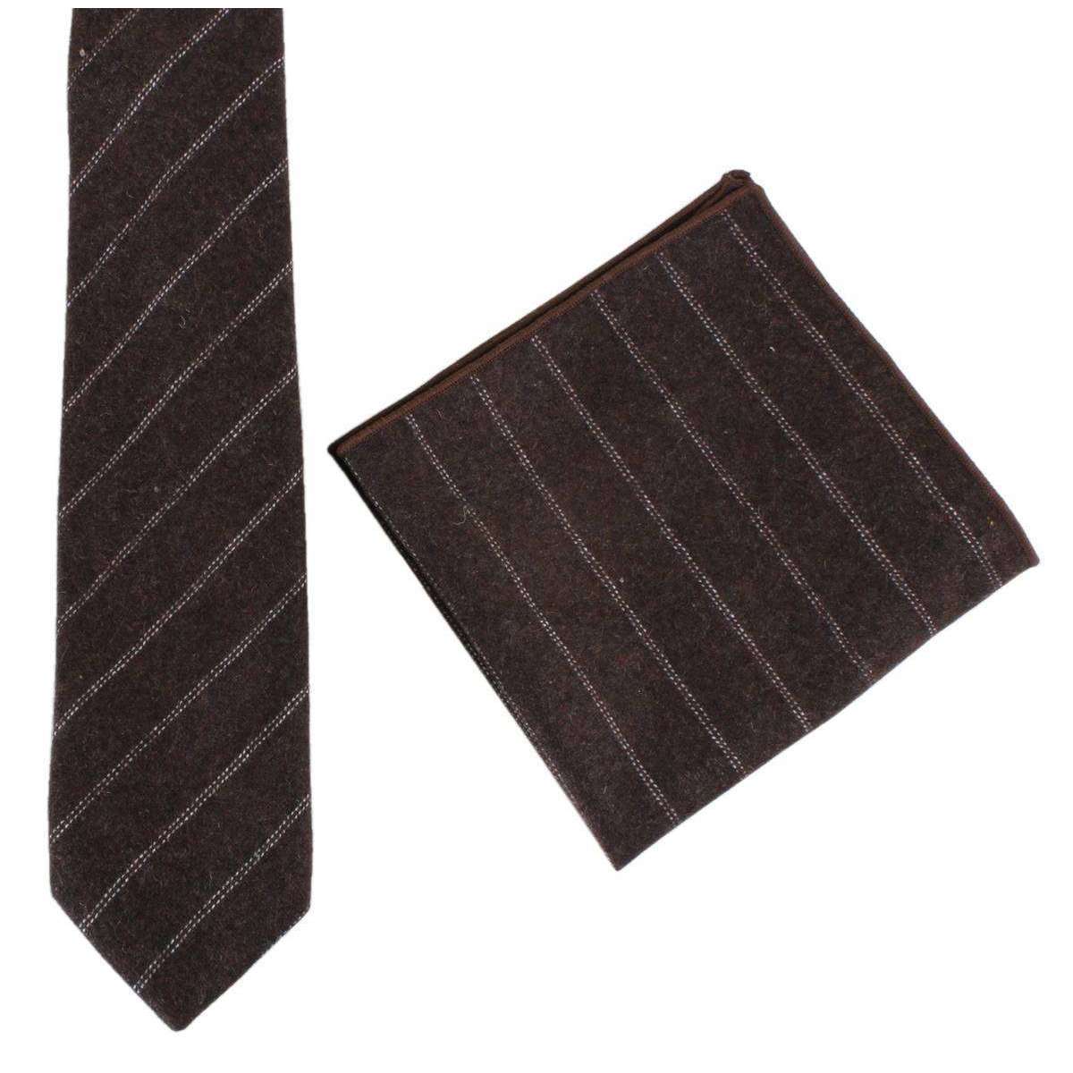 Knightsbridge Neckwear Diagonal Stripe Tie et Pocket Square Set - Brown / White