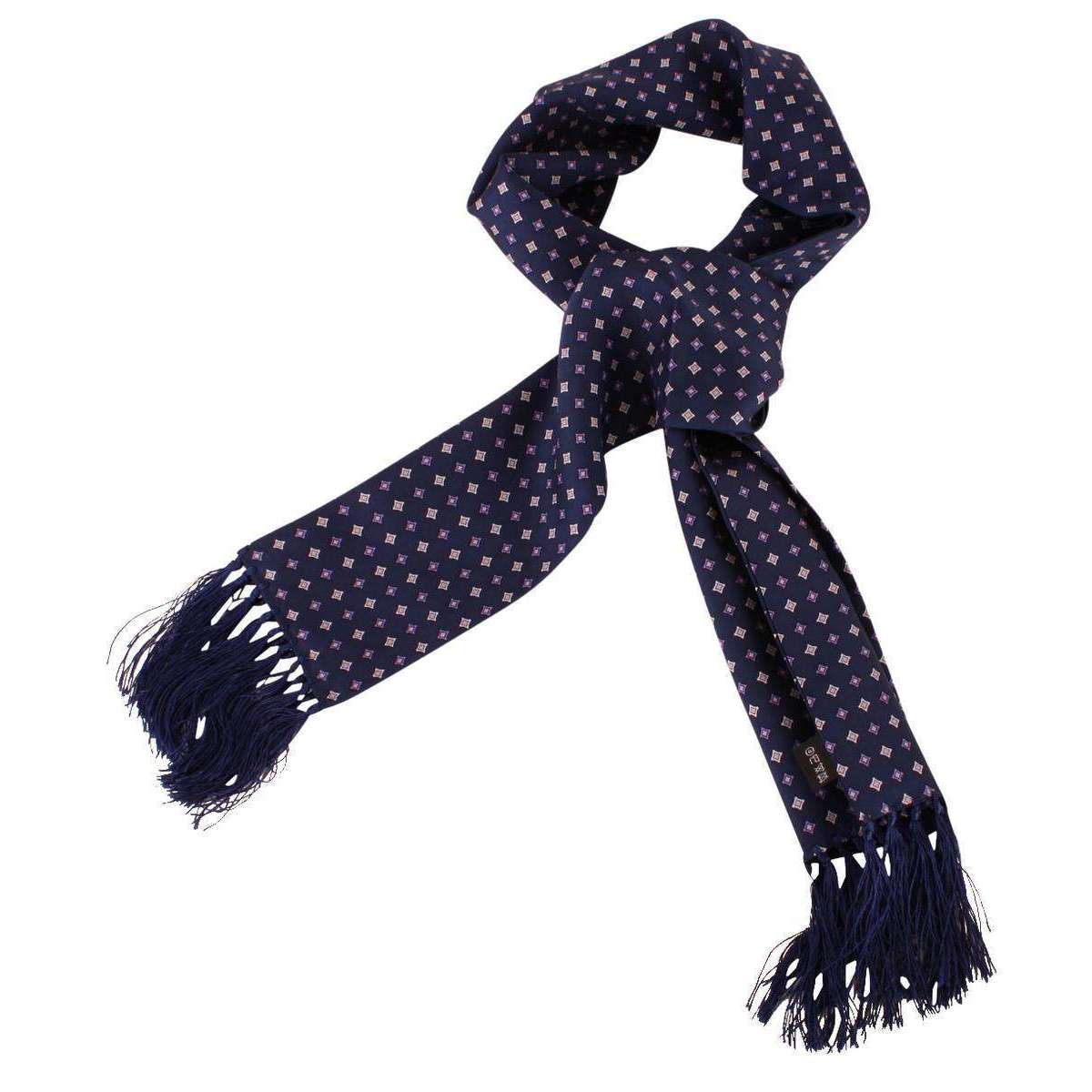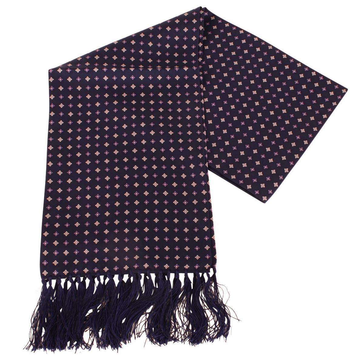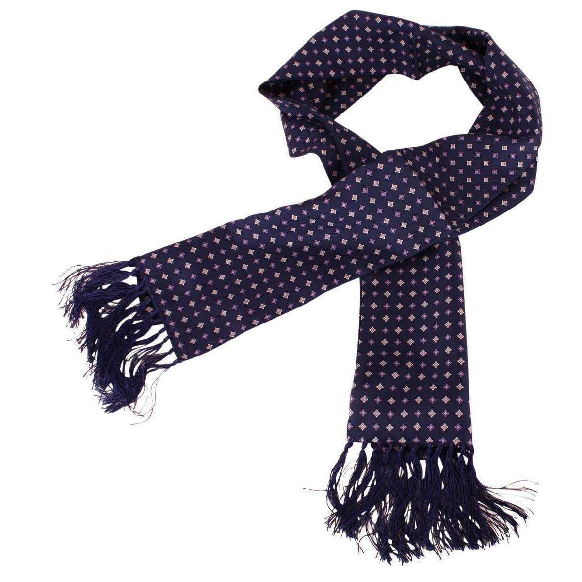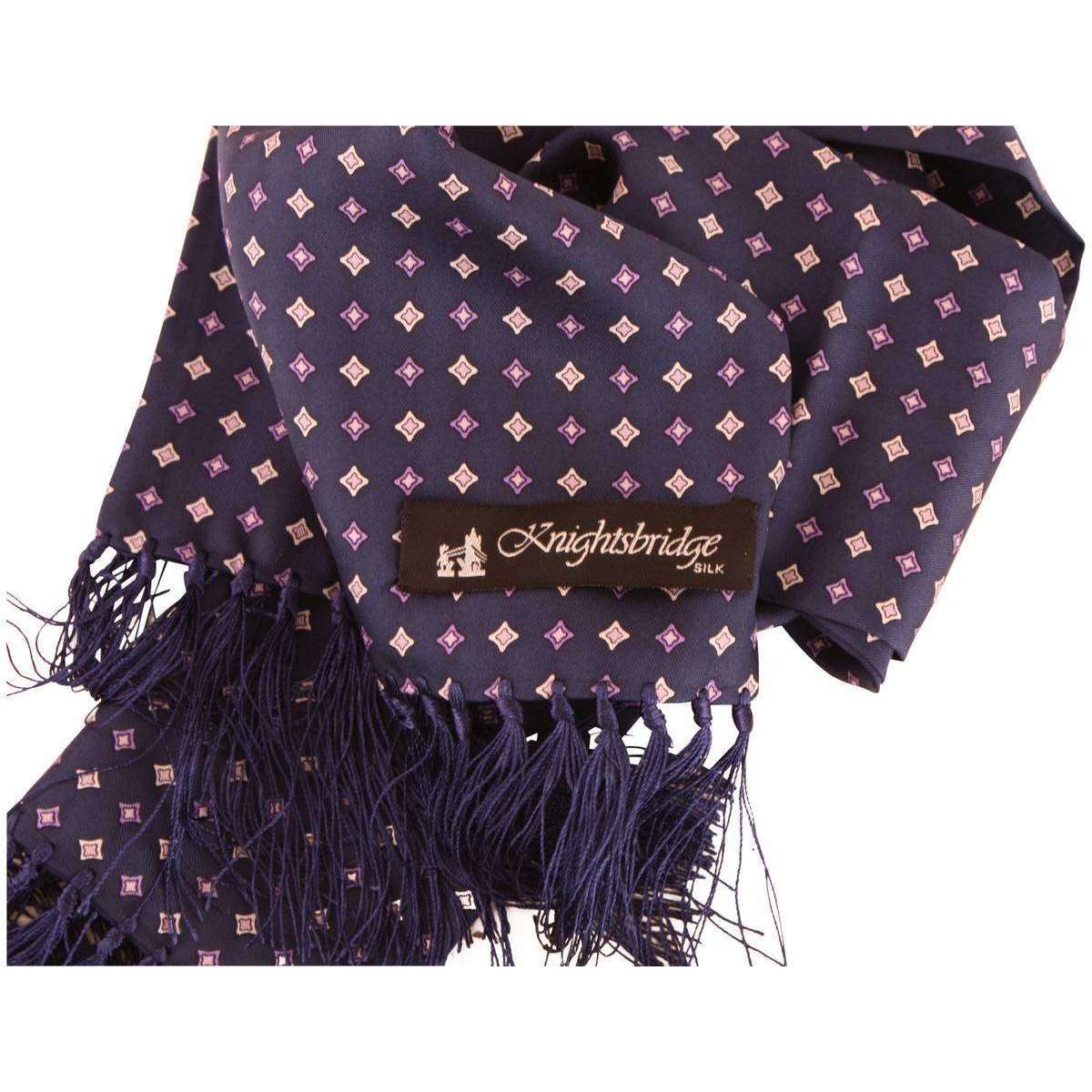 Ajoutez quelque chose de différent et d'unique à votre tenue formelle avec cette écharpe magnifiquement conçue par Knightsbridge Colkwear. Avec une conception inhabituelle de petites formes de diamant disséminées sur toute la pièce, cette superbe écharpe est sûre d'impressionner à n'importe quelle occasion formelle. Les couleurs contrastées de la marine, du violet et du blanc vont ensemble, créant magnifiquement une pièce de cou colorée qui est sûre de se démarquer. Merveilleusement fabriqué à partir de la soie de qualité, il est sûr d'avoir une sensation douce et de vous garder élégant pour les années à venir. Le gland à chaque extrémité de l'écharpe ajoute une poussée élégante à l'accessoire, ce qui en fait une idée cadeau vraiment merveilleuse.