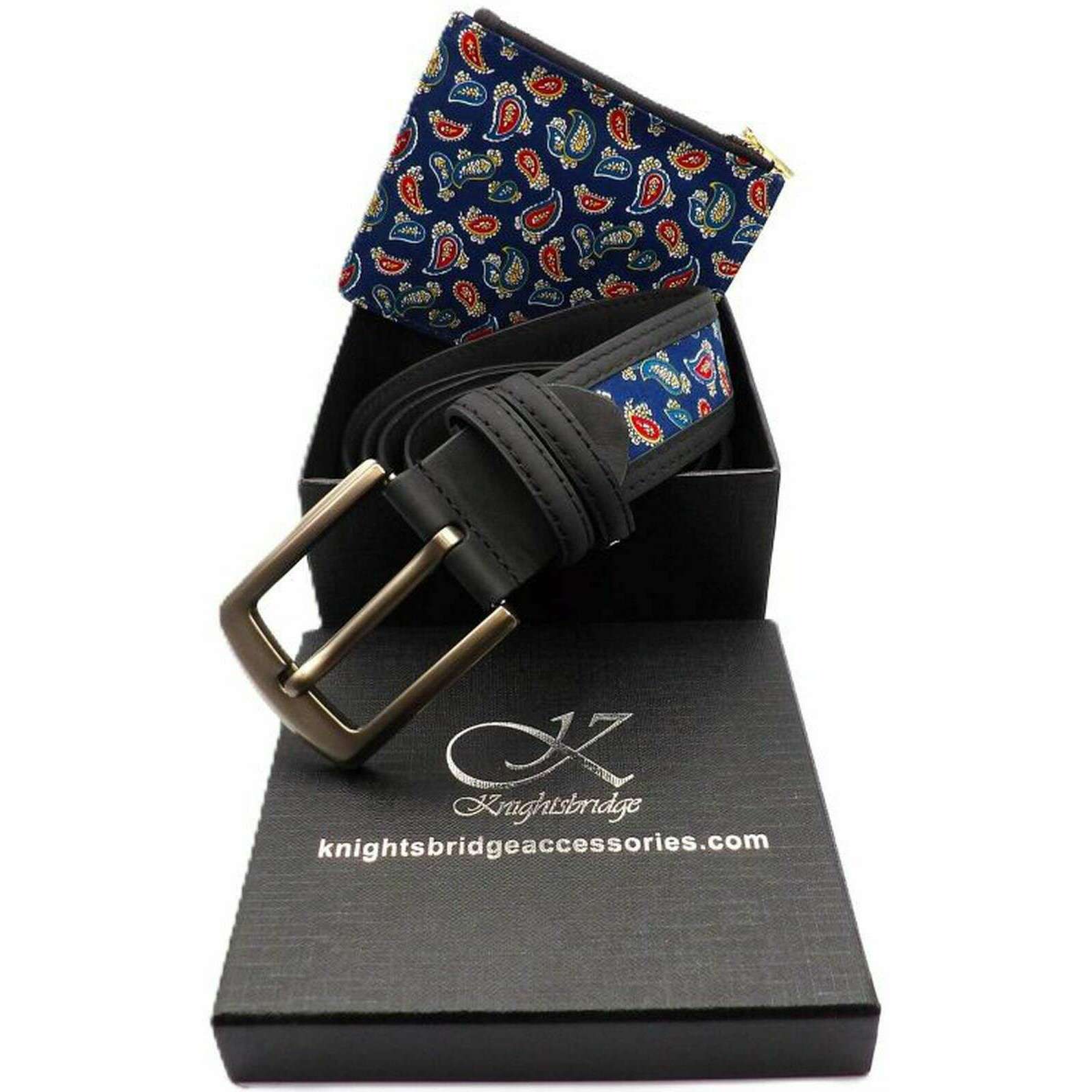 Knightsbridge Neckwear Ensemble ceinture et portefeuille Mayfair Paisley - Noir
