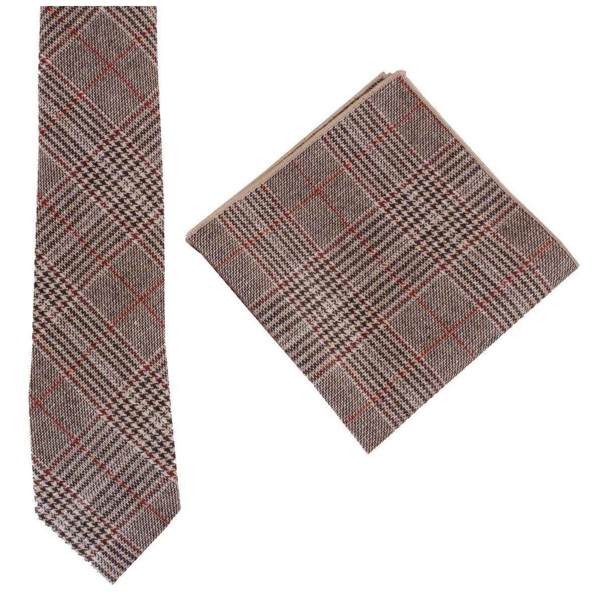 Knightsbridge Neckwear Prince of Wales Vérifiez la cravate et le jeu de poche - marron / rouge