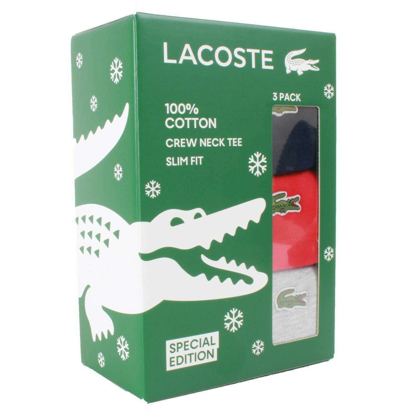 T-shirts de coton slim Cotton 3 Pack Colon de lacoste - gris de Chine Navy / Red / Silver Grey