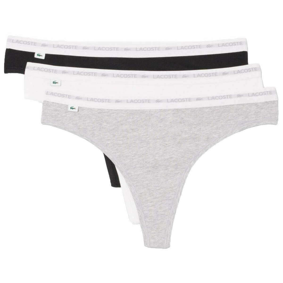 Lacoste Stretch Cotton 3 Pack Thongs - Chine noire / blanc / argent gris