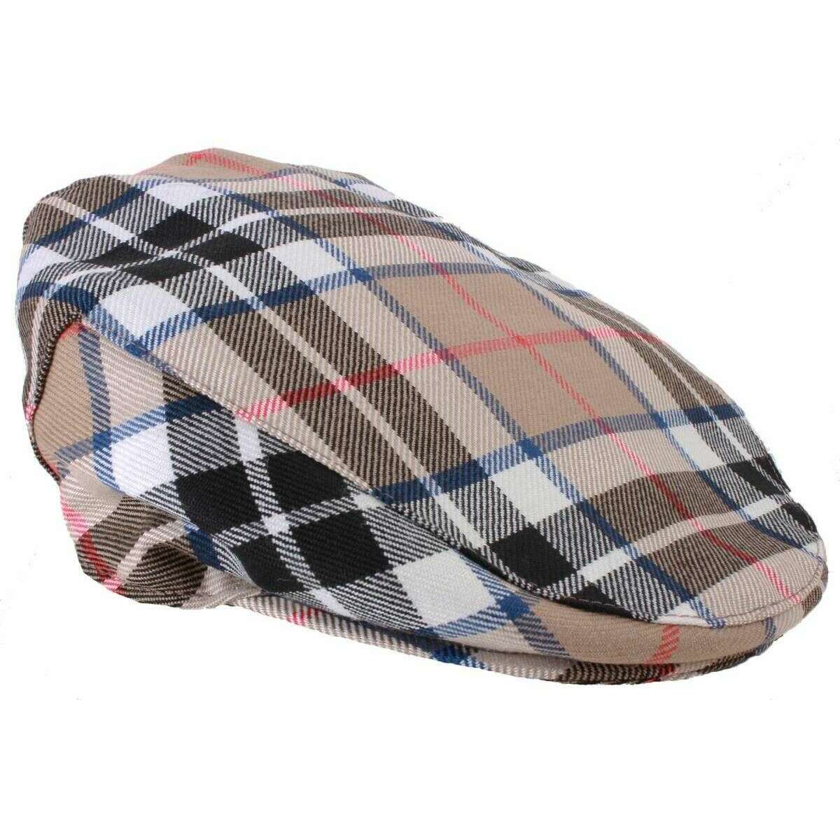 Locharron of Scotland Barnton Thomson Modern Tartan Flat Cap - beige / noir / rouge