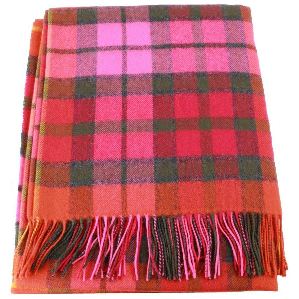 Locharron of Scotland Borders Buchanan Rose Lambswool couverture - rouge / vert / rose