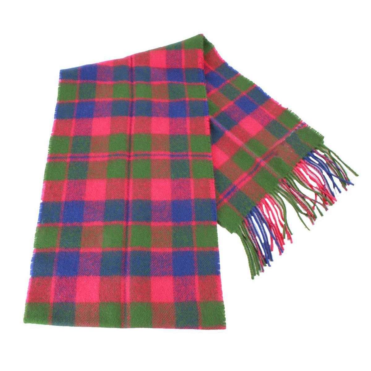 Locharron of Scotland Bowhill Glasgow Lambswool Tartan Scarf - vert / bleu / rose