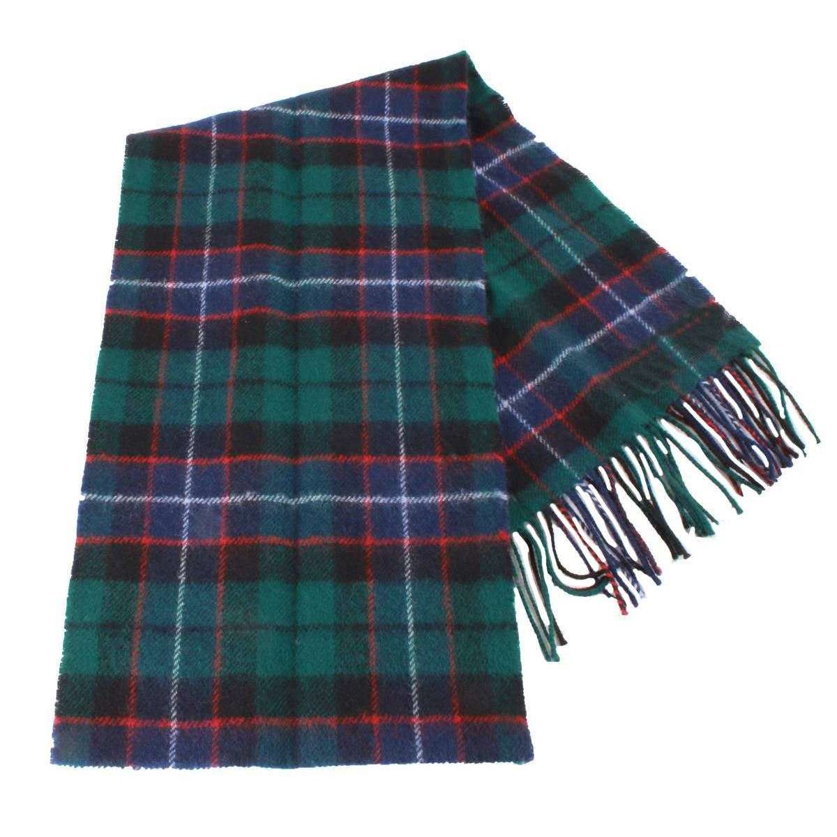 Locharron of Scotland Bowhill Russell Scarf de tartan de lambole moderne - vert / bleu / gris / blanc