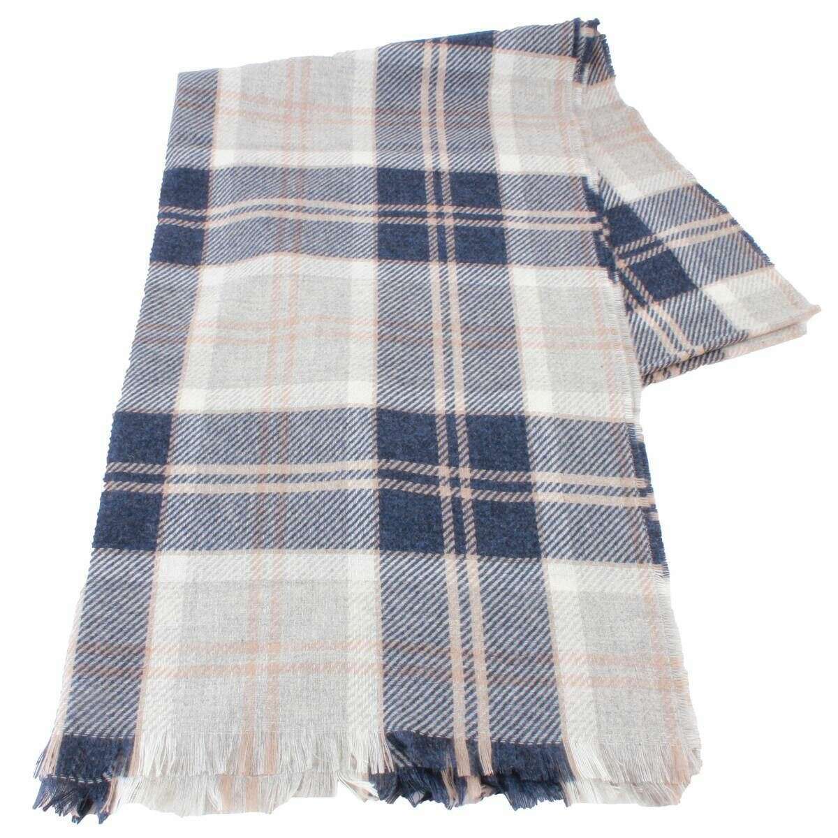 Locharron of Scotland Brock Bannockbane Luxury Fine Wool Stole - Marine / Crème / Beige